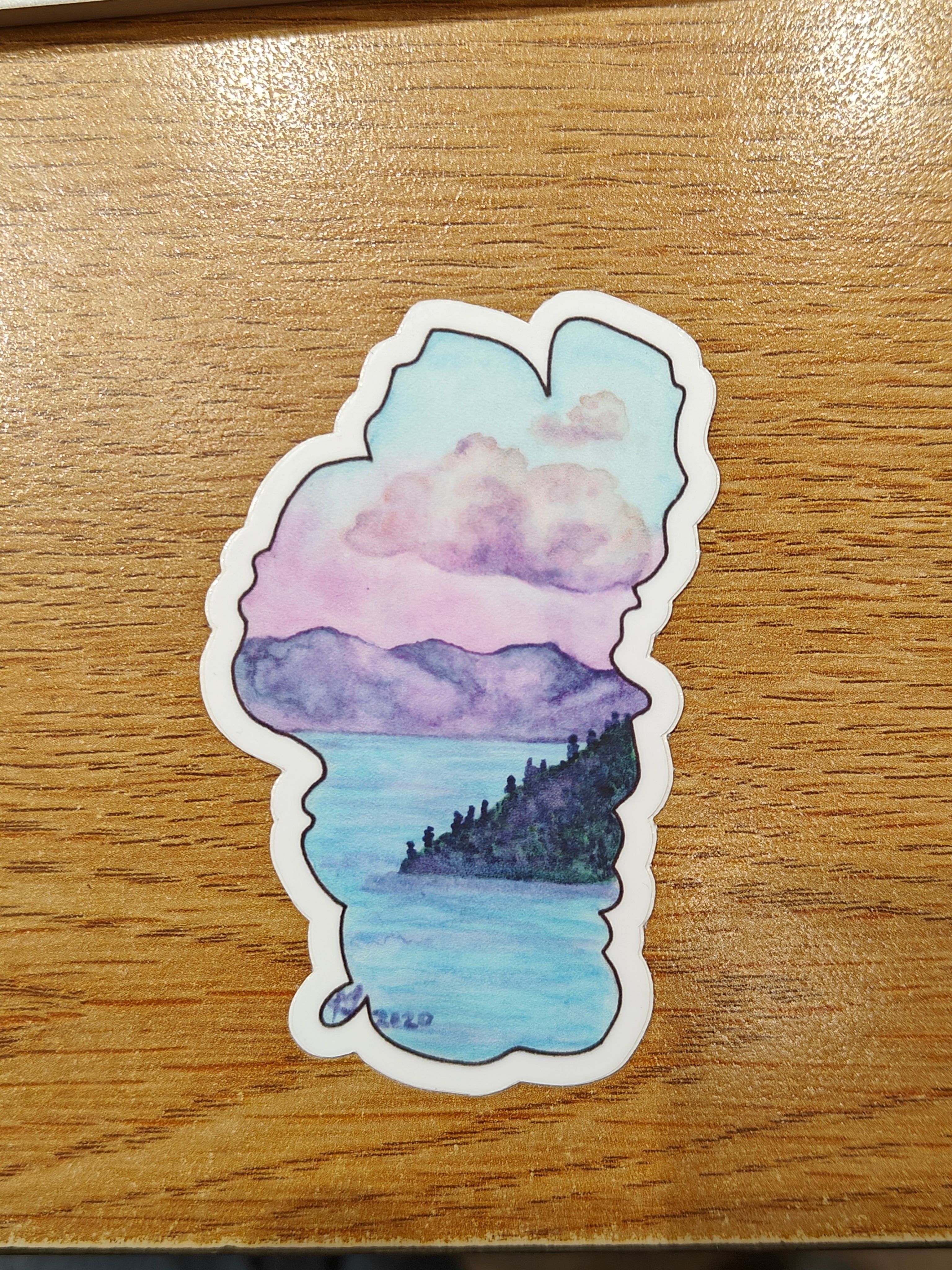 1.75"x3" Lake Tahoe Sticker with Original artwork by local artist Alexandra Theiss