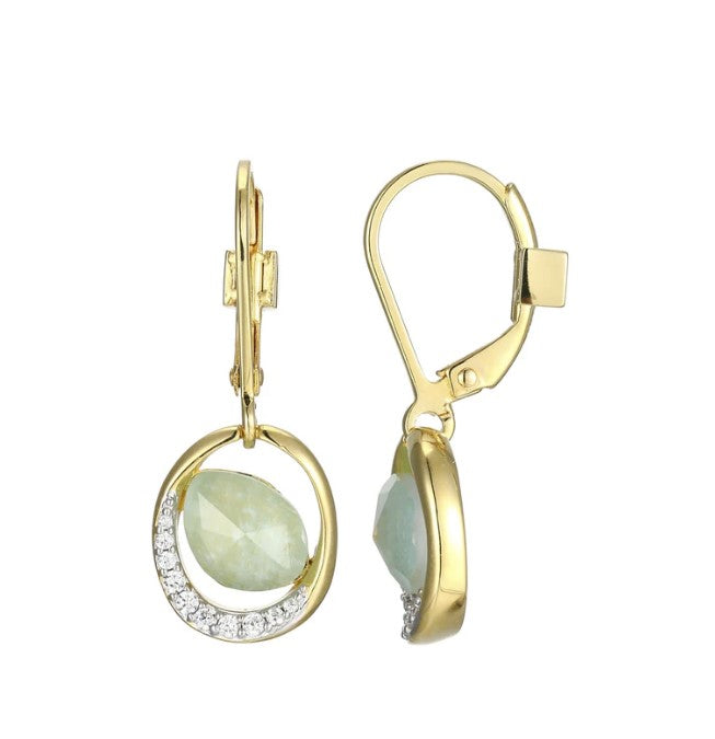 Sterling Silver and 14 Karat Yellow Gold Plated Earrings with With Two Various Shapes Amazonites and Cubic Zirconia Gemstones. Earrings Include Two Hidden Round Created Rubies Which Represents Inner Beauty, Inner Peace & Inner Strength. Earrings Measures 1 Inch Long.