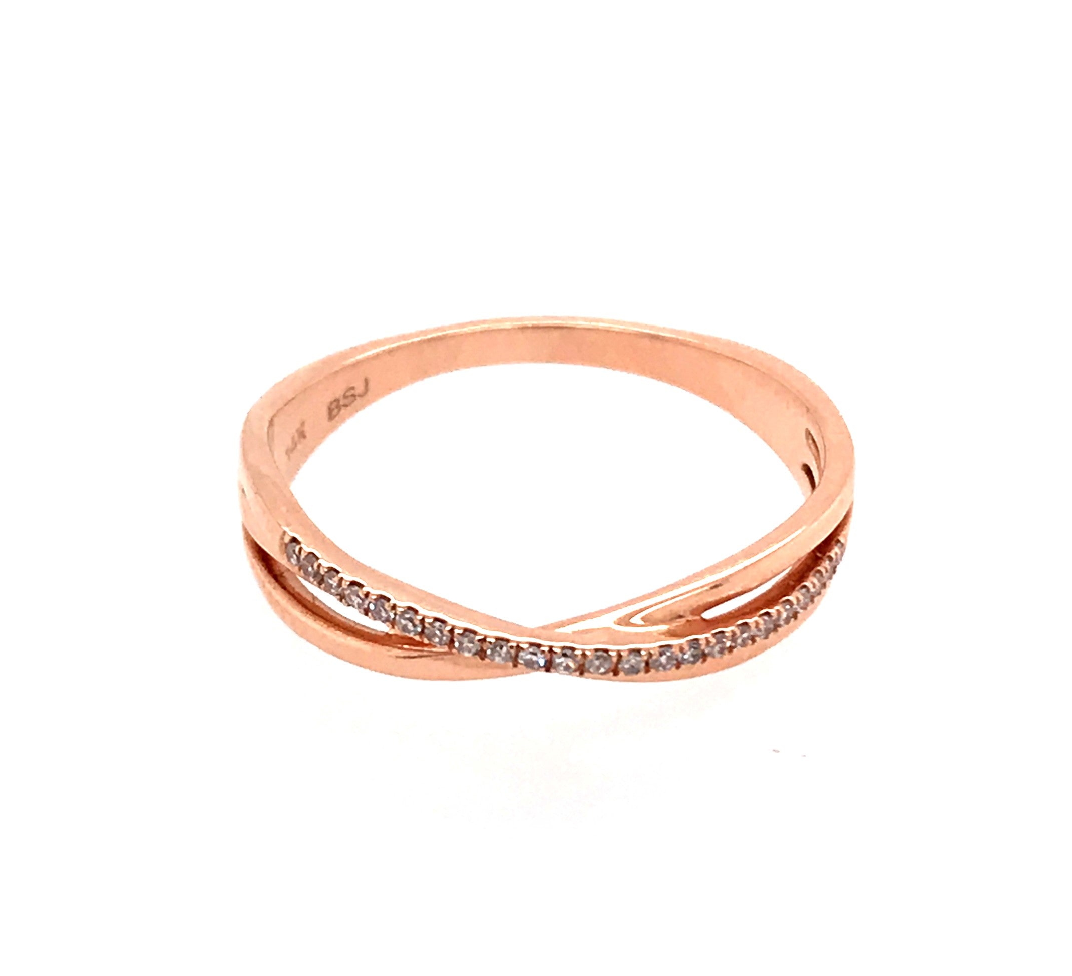 14 Karat Rose & White Gold Ring with Round Diamonds at 0.05 Carats Total Weight of G/H SI quality.Ring Size 7.5Bluestone Jewelry Design