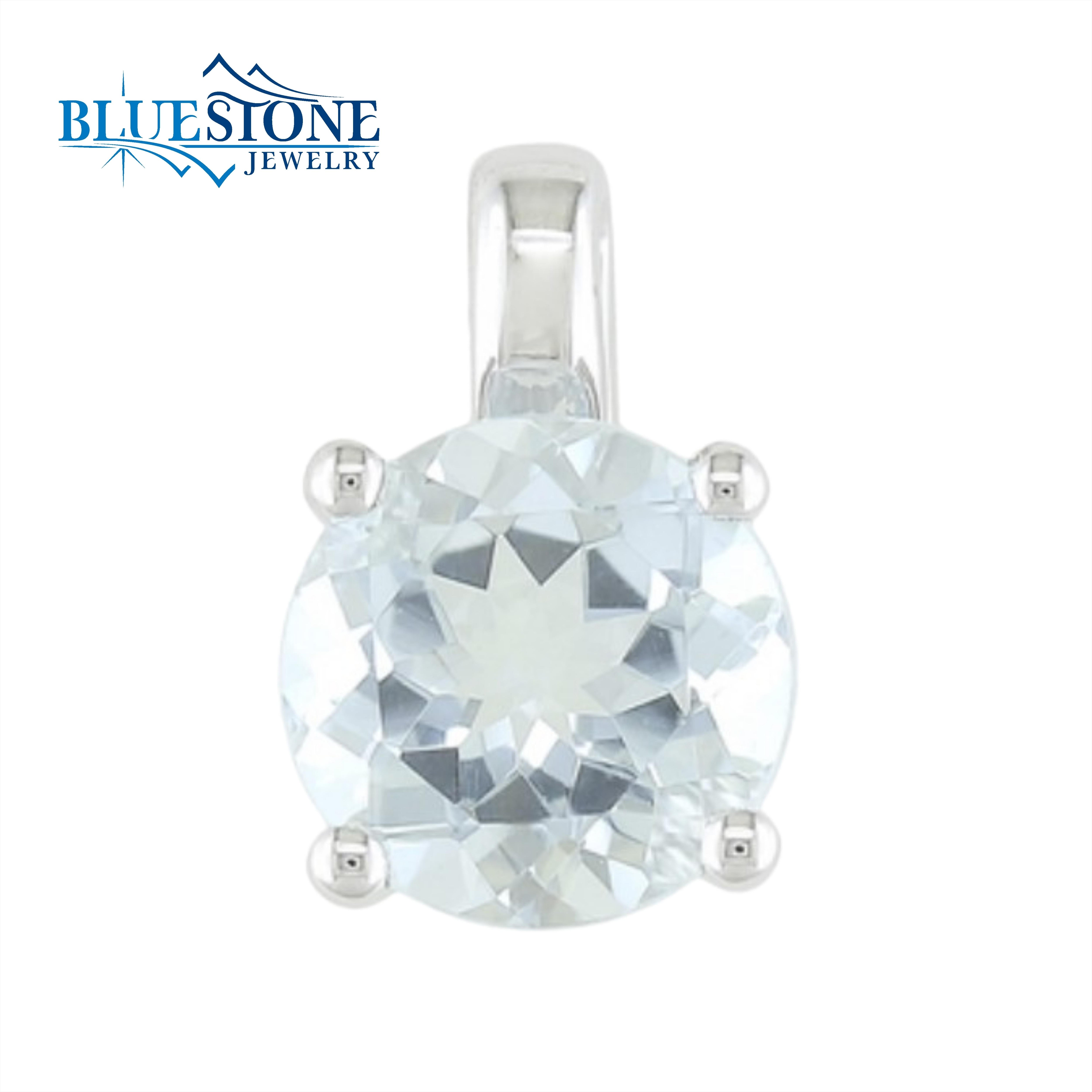 14 Karat White Gold 6mm Round Aquamarine Simple Pendant.0.77 Aquamarine Carat Weight.Chain Can Be Purchased Separately.