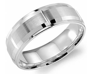 14 Karat White Gold 7mm Wedding Band with Satin Finished Center & High Polished Edges & Grooves.Ring Size 10.Can be special ordered or re-sized per request. Please contact for details.Available in 10 Karat, 14 Karat & 18 Karat White or Yellow Gold & Platinum.15YASBSJ50