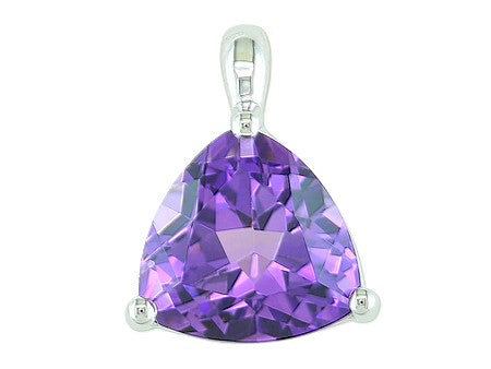 14 Karat White Gold 8.7mm Trillion Cut Amethyst Simple Pendant.1.53 Amethyst Carat Weight.Chain Can Be Purchased Separately.