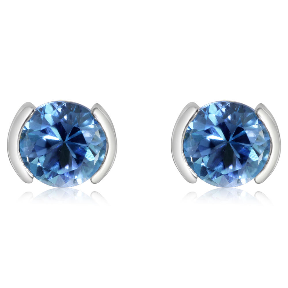 14 Karat White Gold Stud Earrings with Two 4mm Round Blue Topazes. Total Carat Weight of 0.64cts.