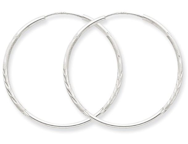 Lady's 14 Karat White Gold Diamond Cut Large Hoop Earrings 30mm