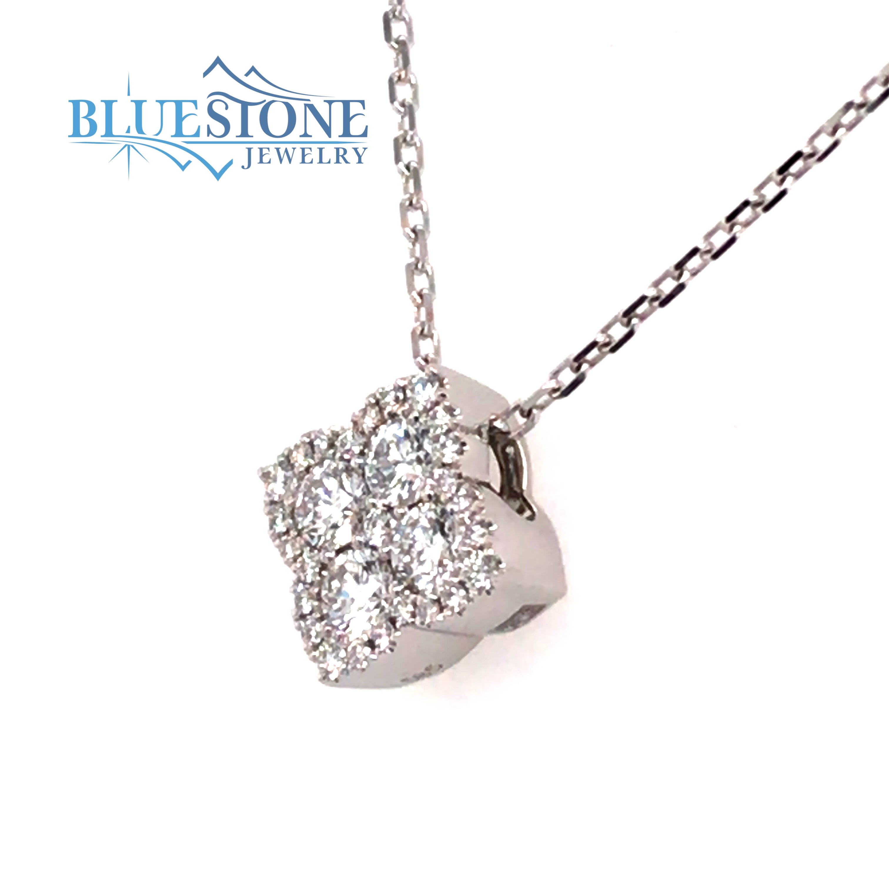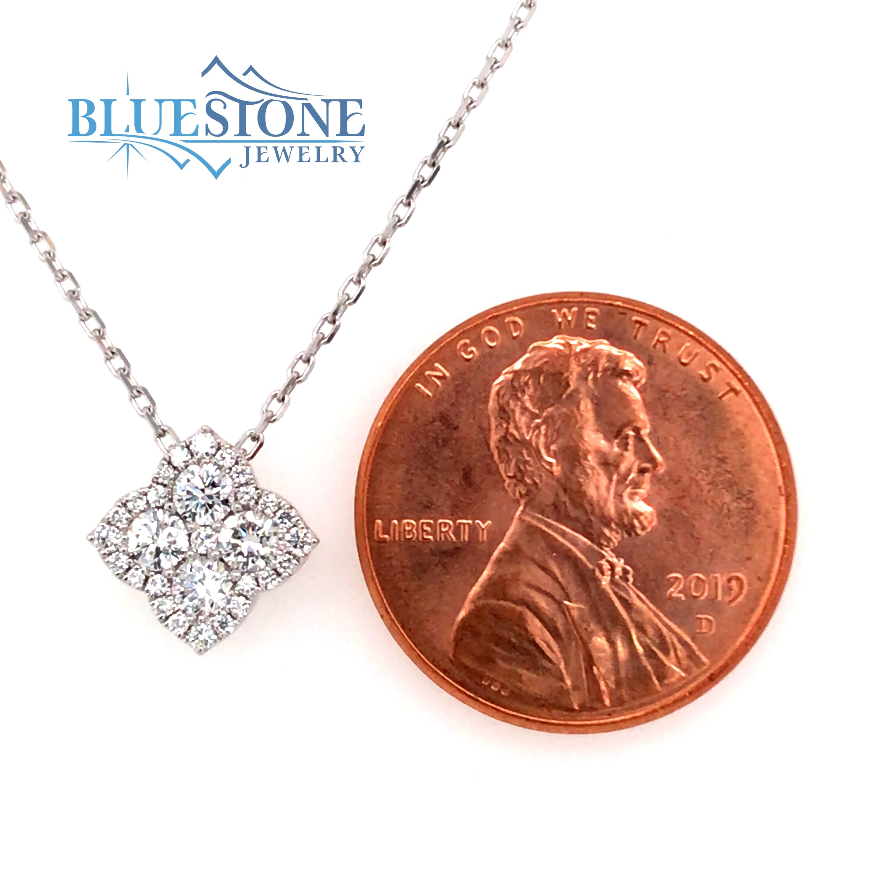 14 Karat White Gold Pendant with 29 Round Diamonds of Various Sizes at 0.35 Total Carat Weight. Comes on an 18" White Gold Chain.