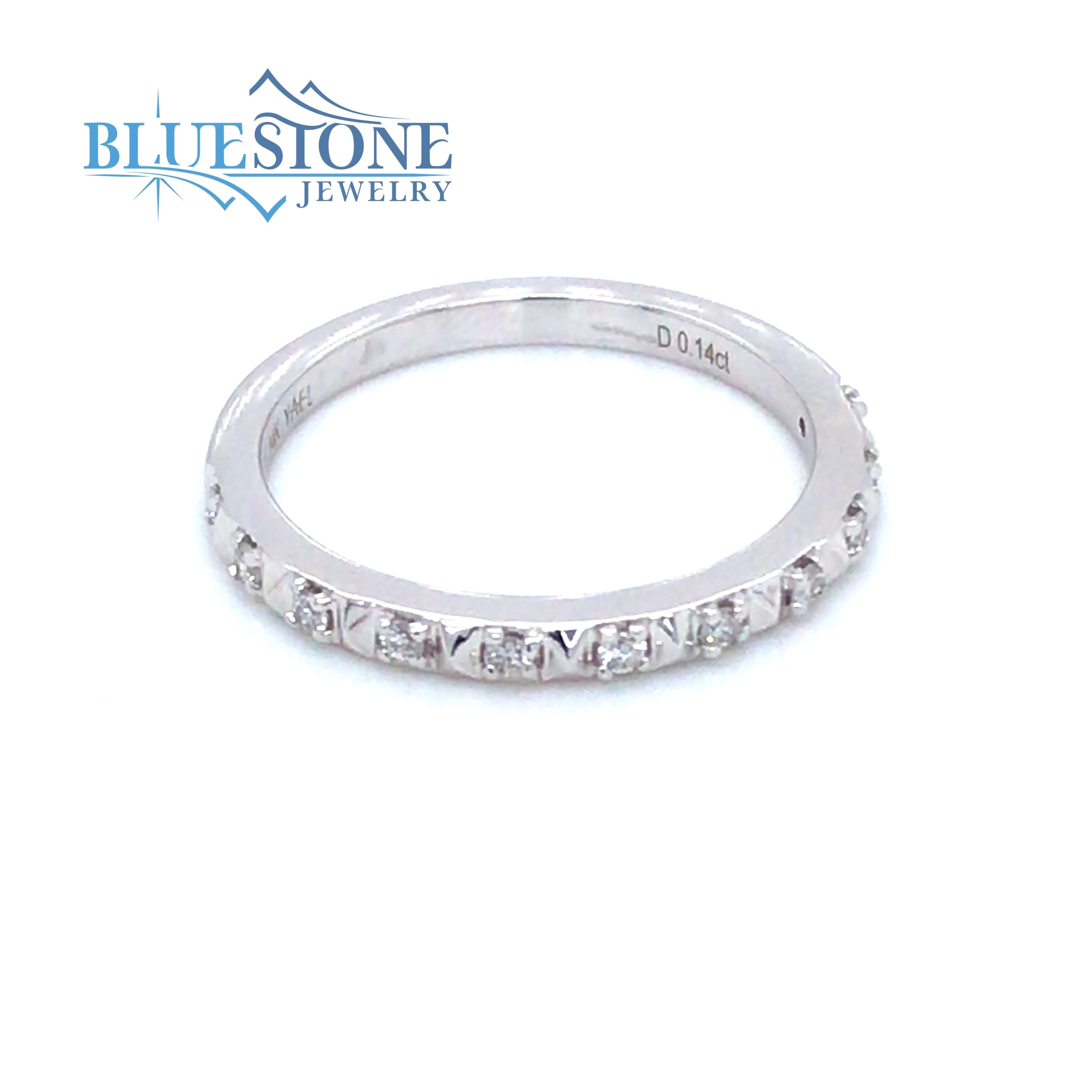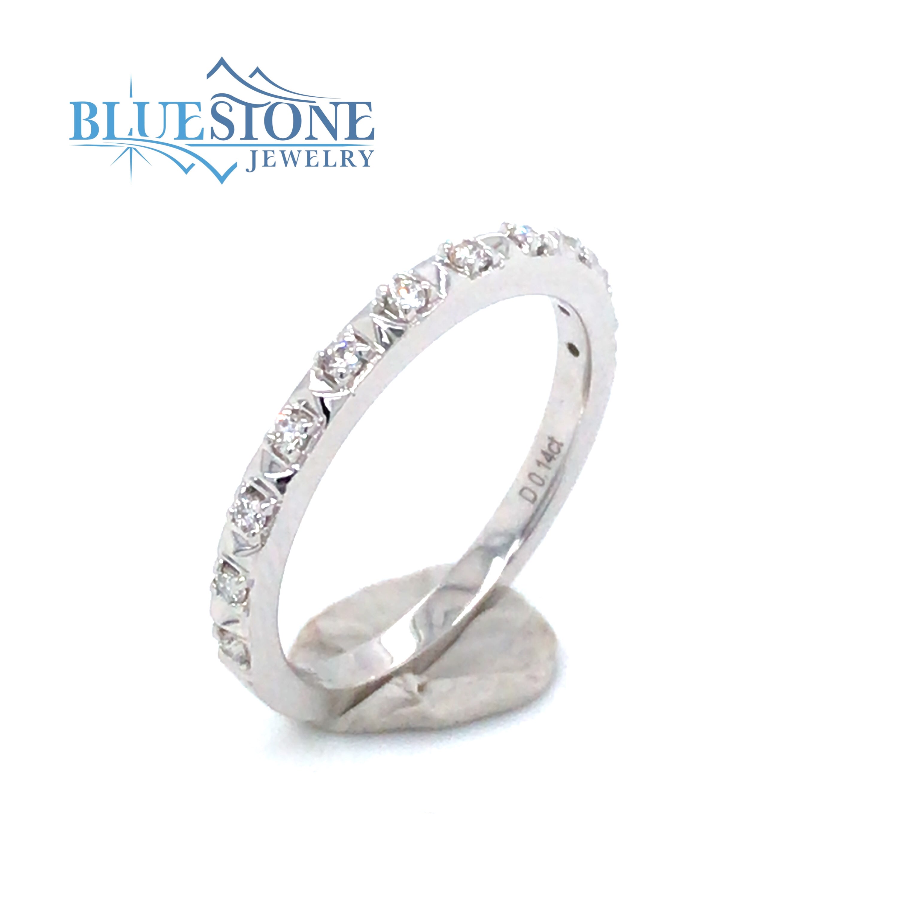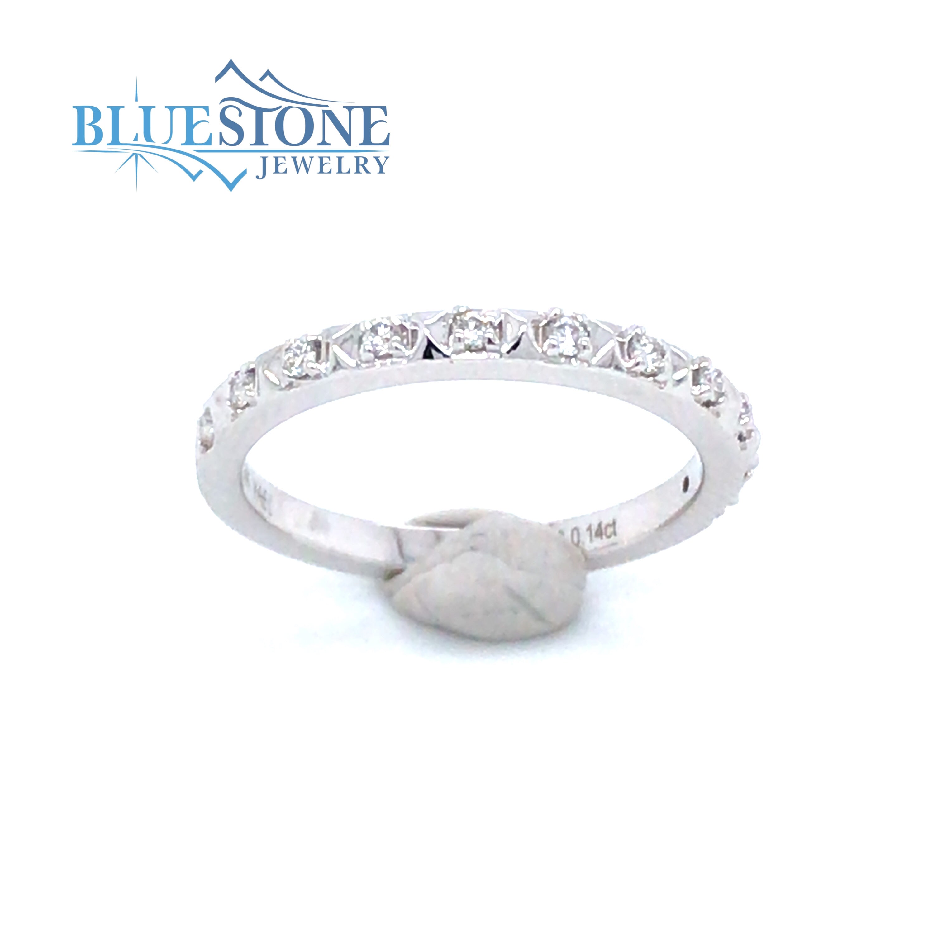 14 Karat White Gold Ring with 11 Round Accent Diamonds at 0.14 Total Carat Weight in SI1 Quality. 2.42 Gram Weight.Ring Size 6.5.Can be ordered in other ring sizes.