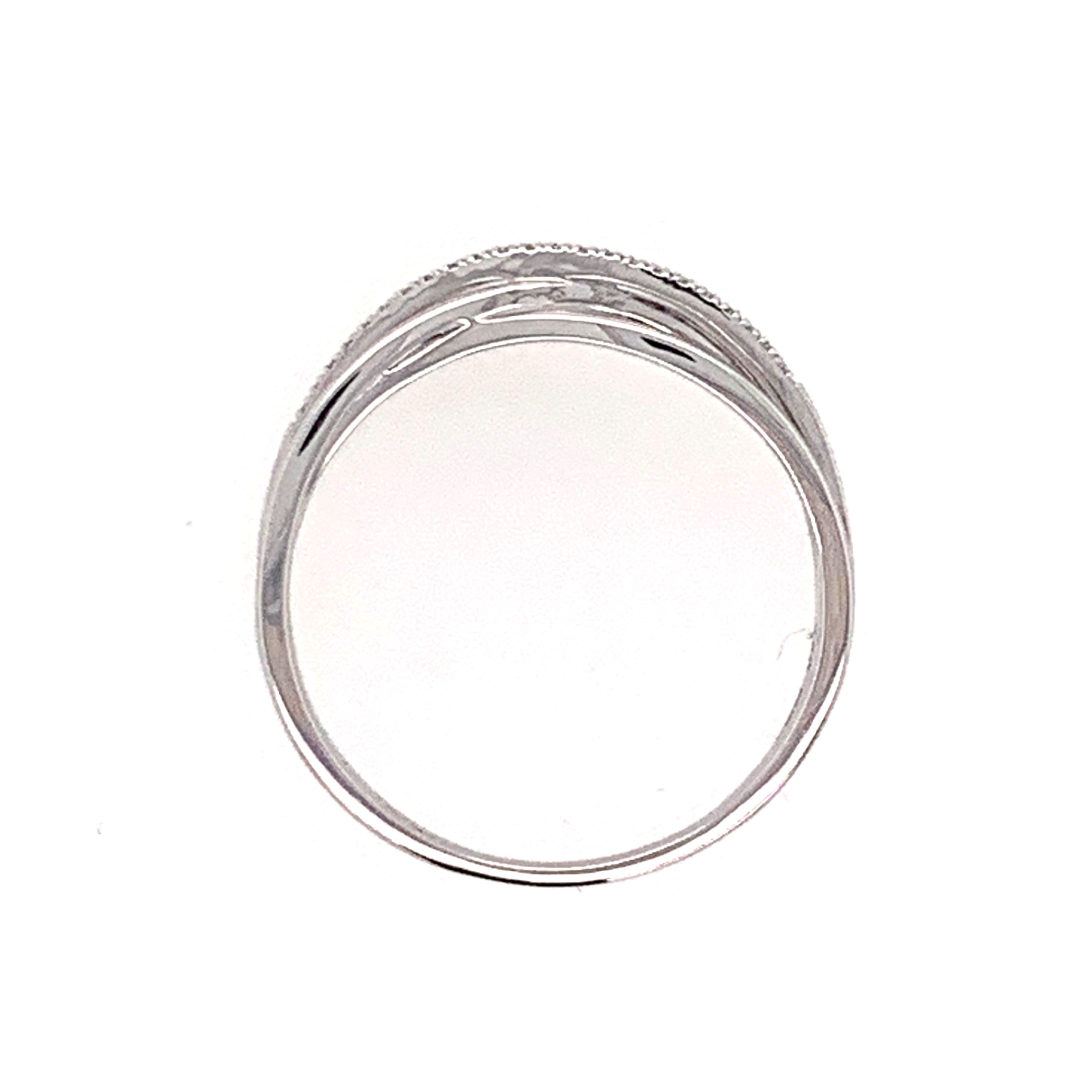 14 Karat White Gold Fashion Ring or Wedding Band with 23 Round Diamonds at 0.05 Carats Total Weight Round G Si1 QualitySize 5 at an overall finished weight of 1.8 gramsBluestone Jewelry Design