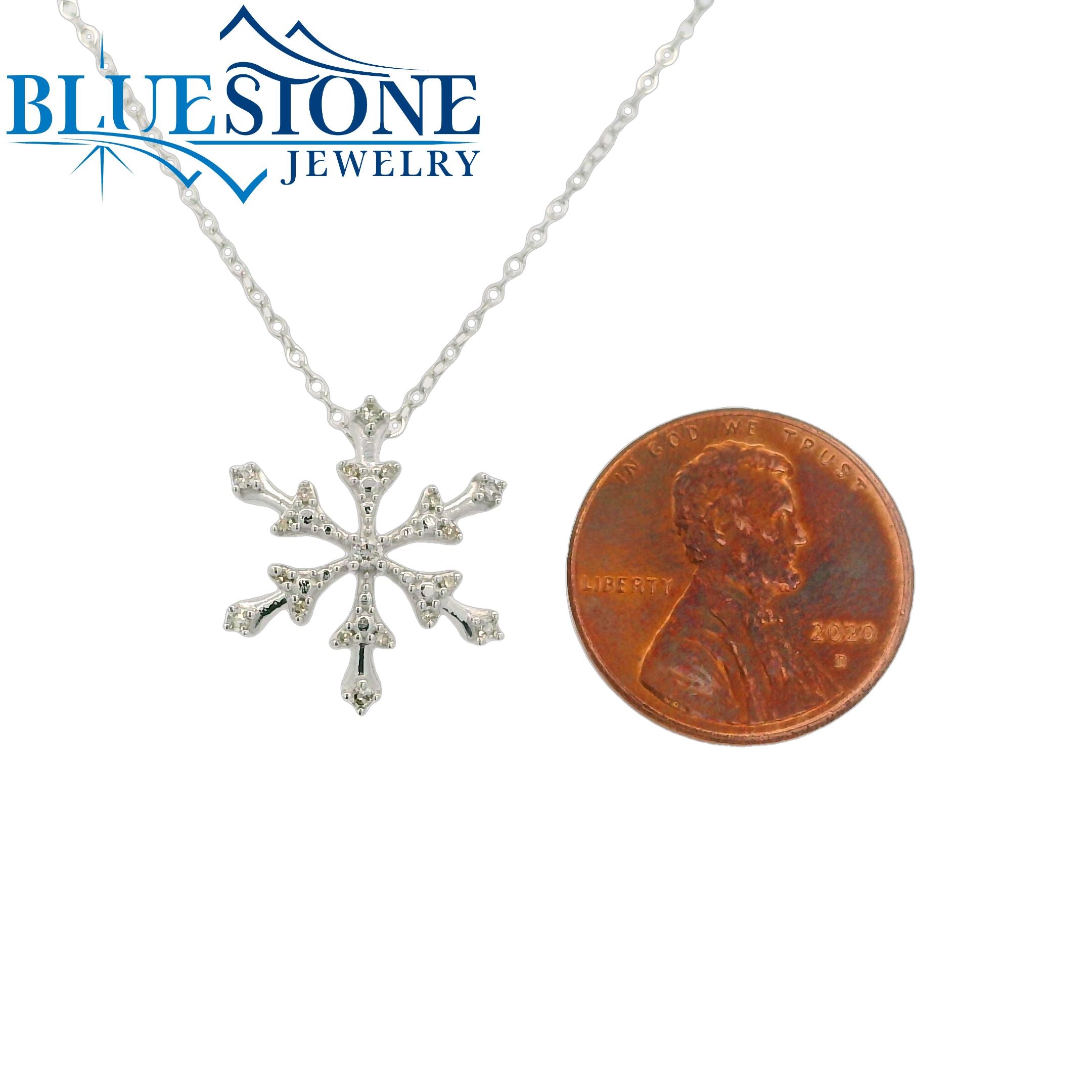 14 Karat White Gold Pendant With 19 Round Diamonds At 0.10 Carats Total Weight.Necklace Comes On A 14 Karat White Gold Rolo Chain Measuring 18 Inches. Can Be Worn At 17" And 16".