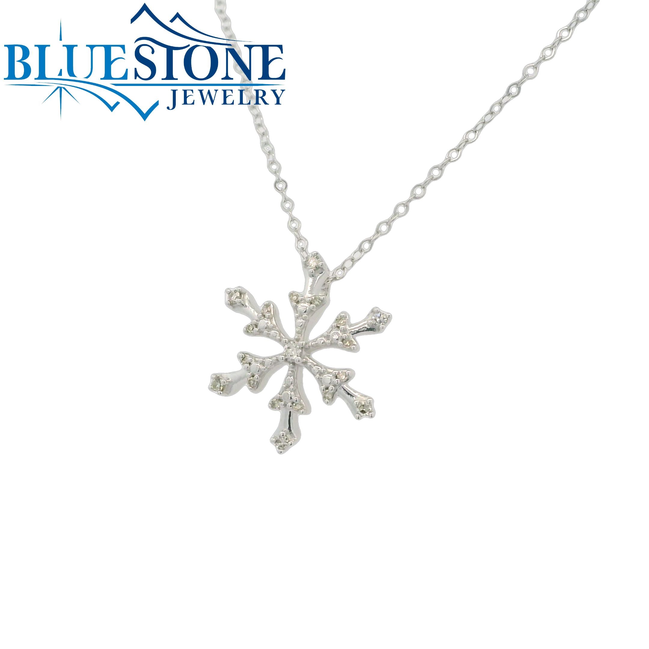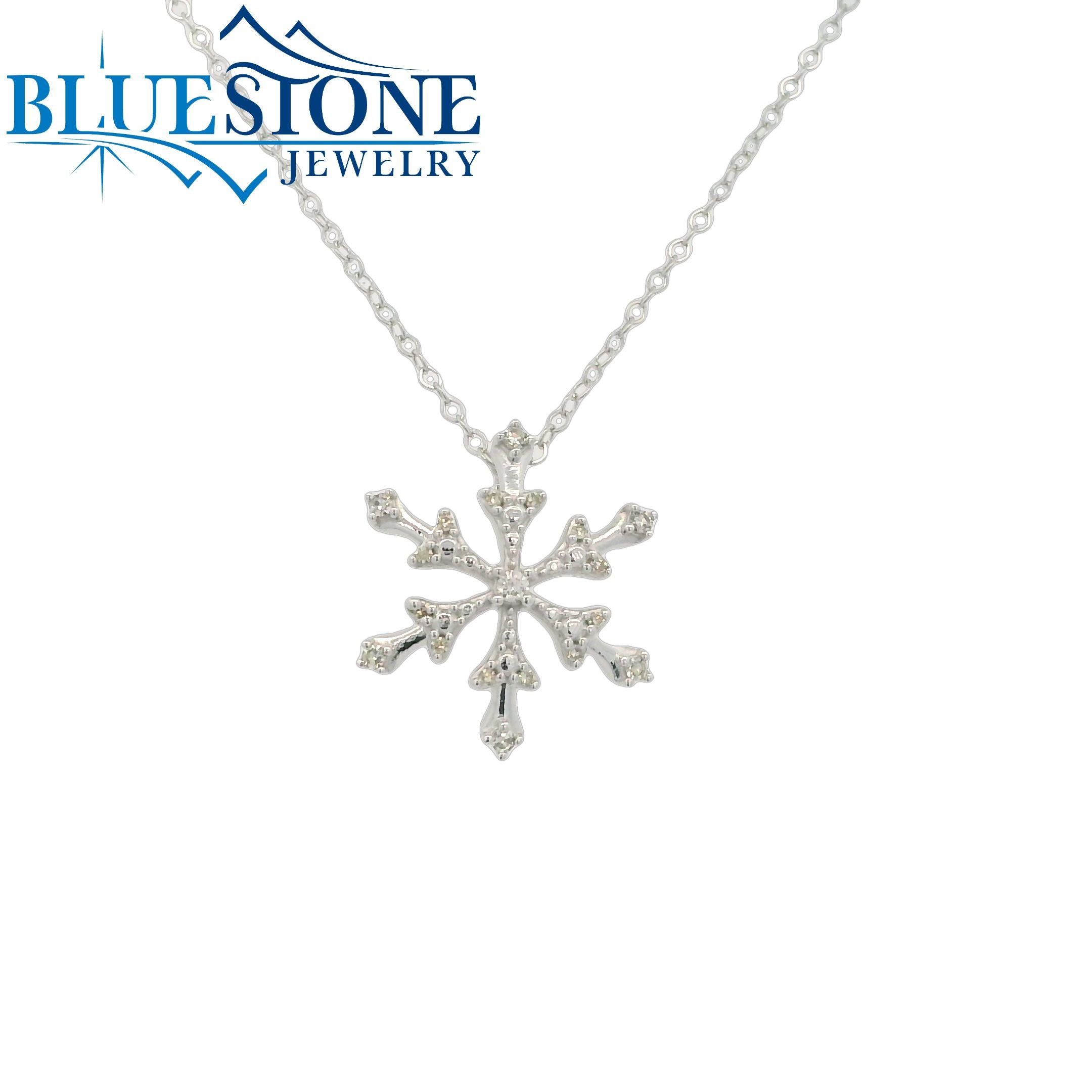 14 Karat White Gold Diamond Snowflake Necklace - 18"