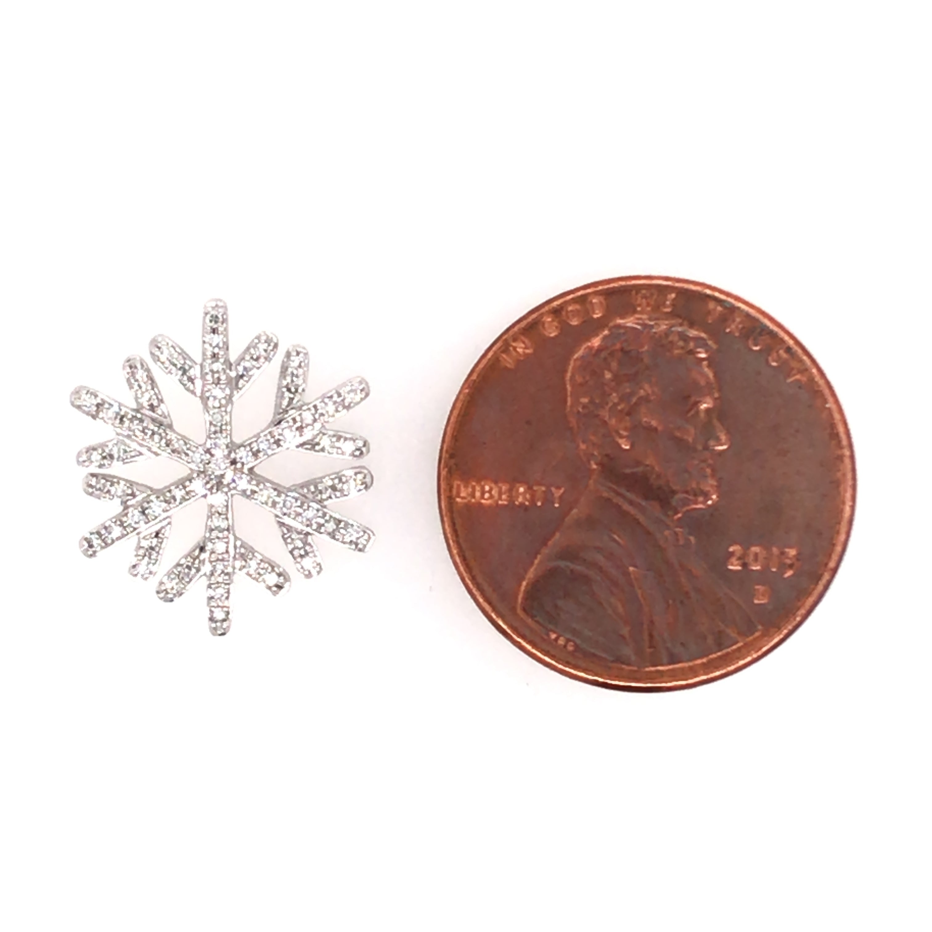 14 Karat White Gold Snowflake Pendant with 61 Round Diamonds at 0.15 Carats Total Weight. Measures Approximately 0.25" x 0.25". Chain is sold separately. Comes on an 18 inch DISPLAY chain.