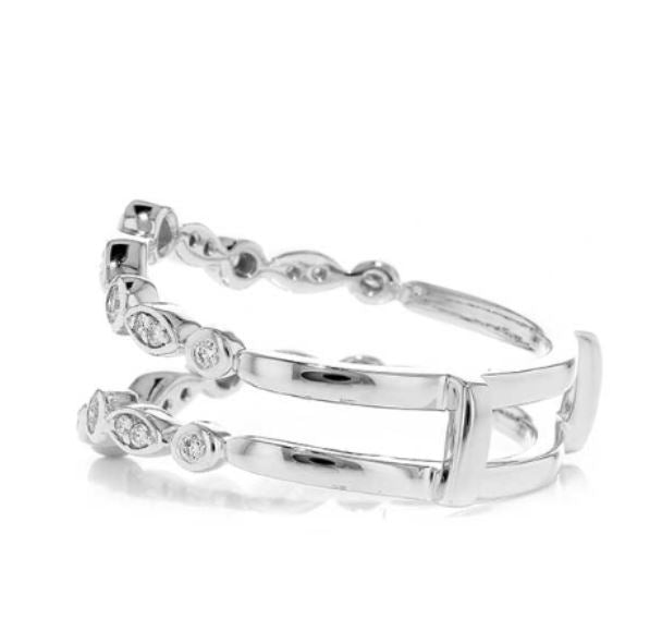 14 Karat White Gold Ring Guard Wedding Band with 36 Round Diamonds at 0.20 Total Carat Weight G SI1 Quality.Ring Size 7.Can be ordered in other ring sizes and metal options. Price may vary.
