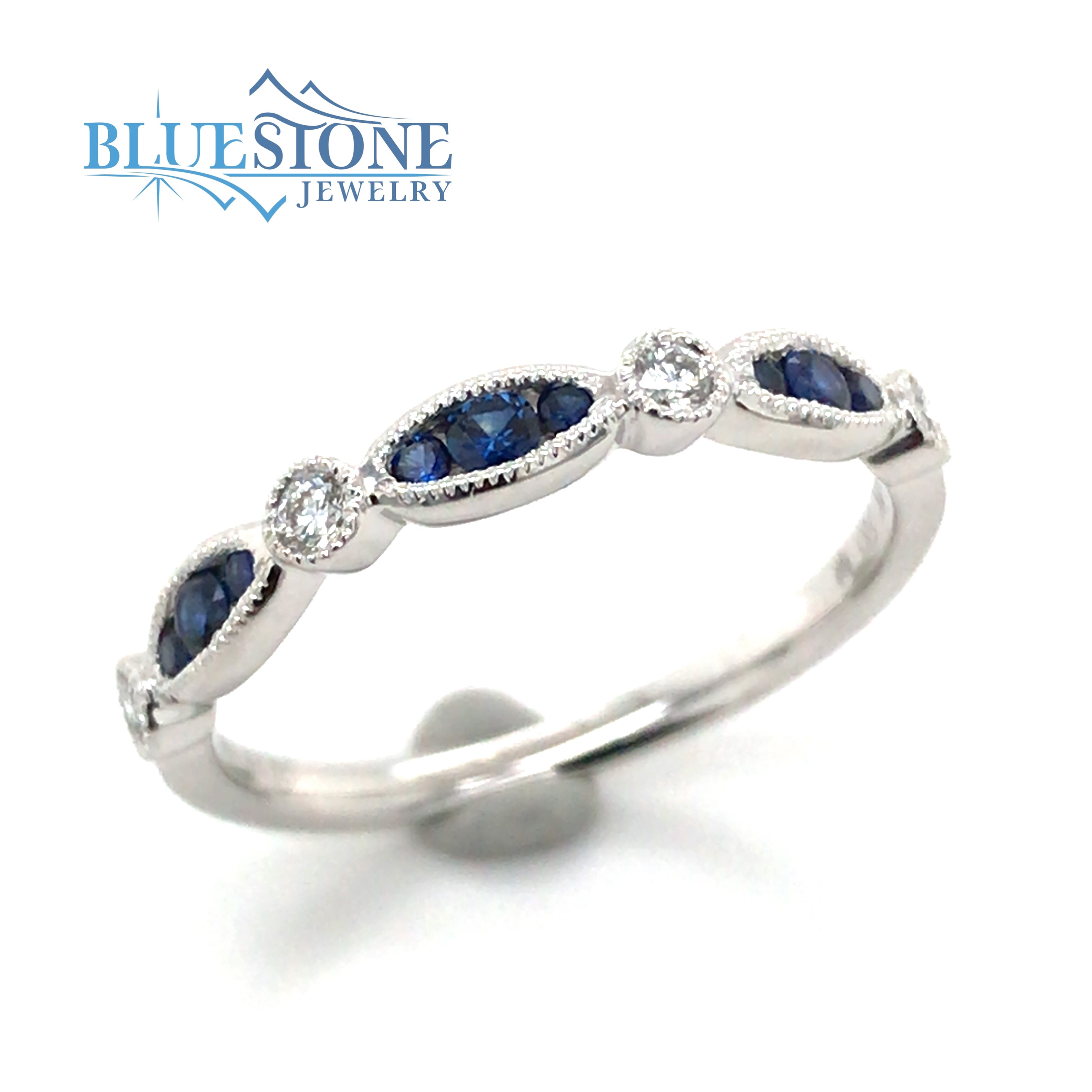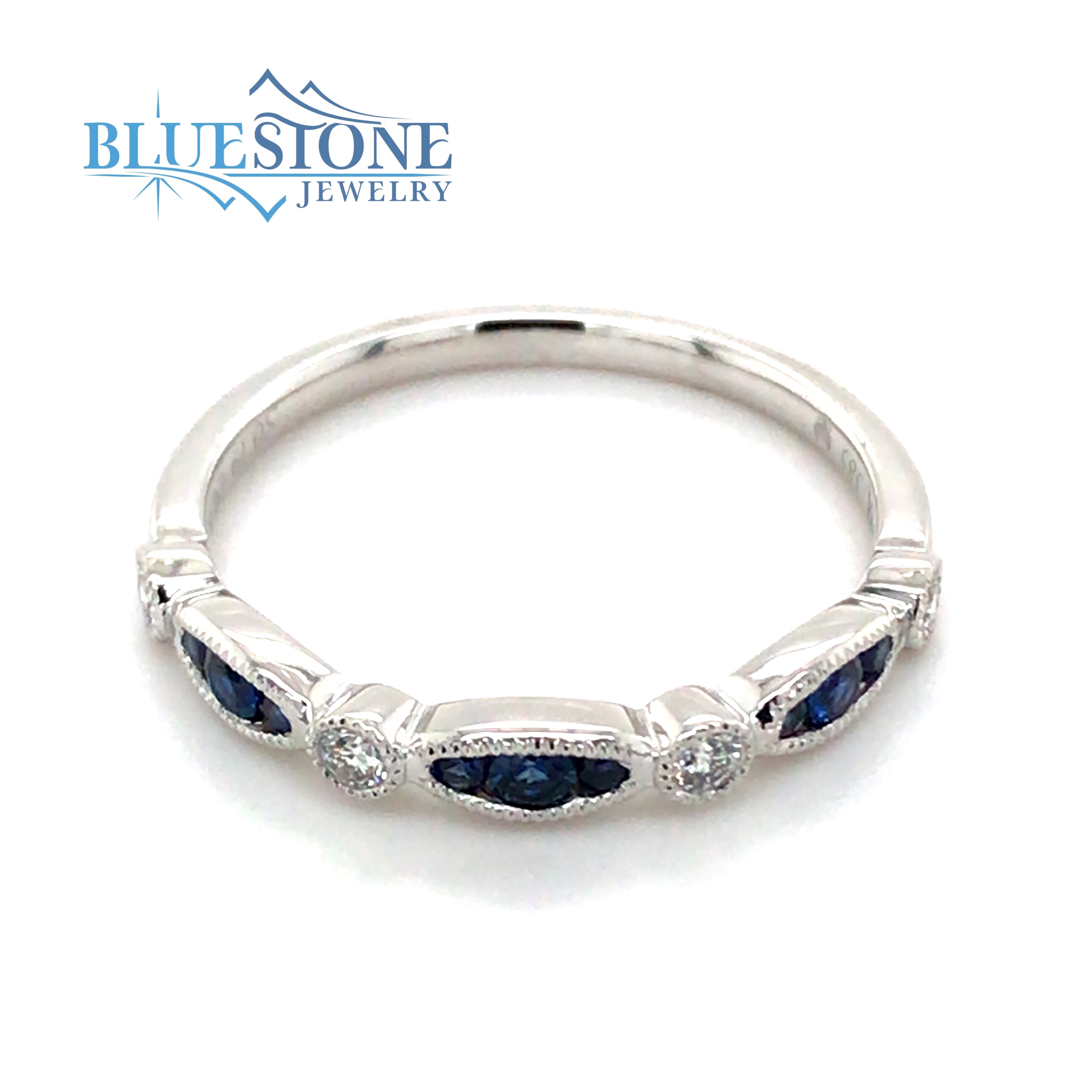 14 Karat White Gold Ring with 9 Round Natural Sapphires at 0.19 Total