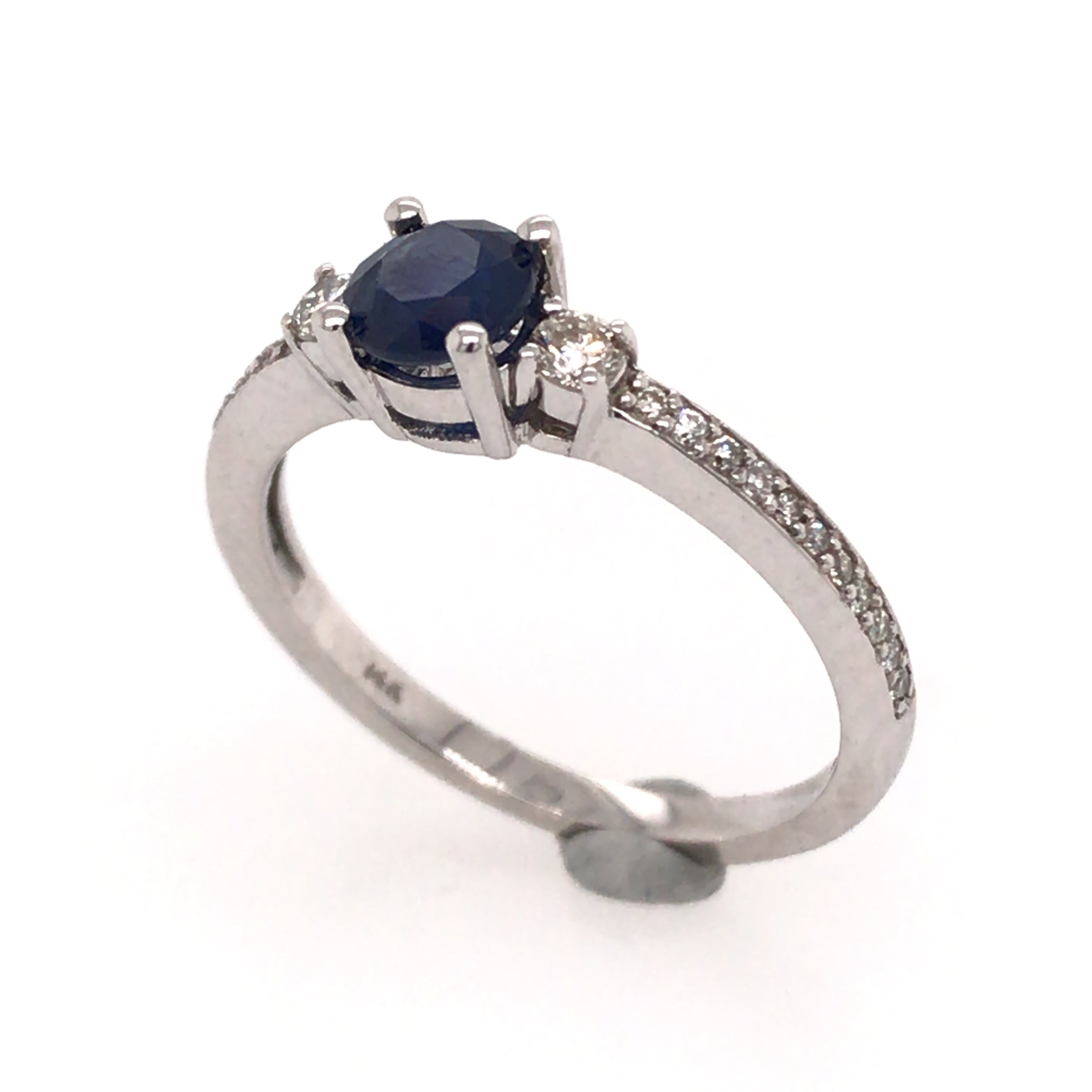 14 Karat White Gold Ring with Blue Sapphire & Diamonds