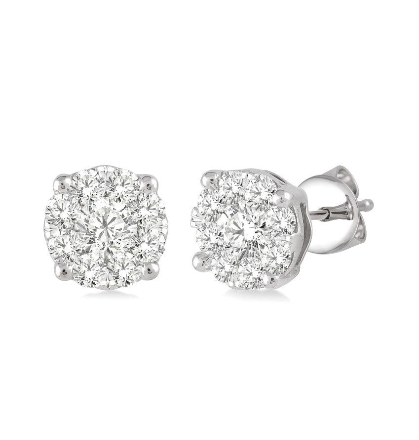 14 Karat White Gold Stud Earrings with 18 Round Invisible Set Diamonds