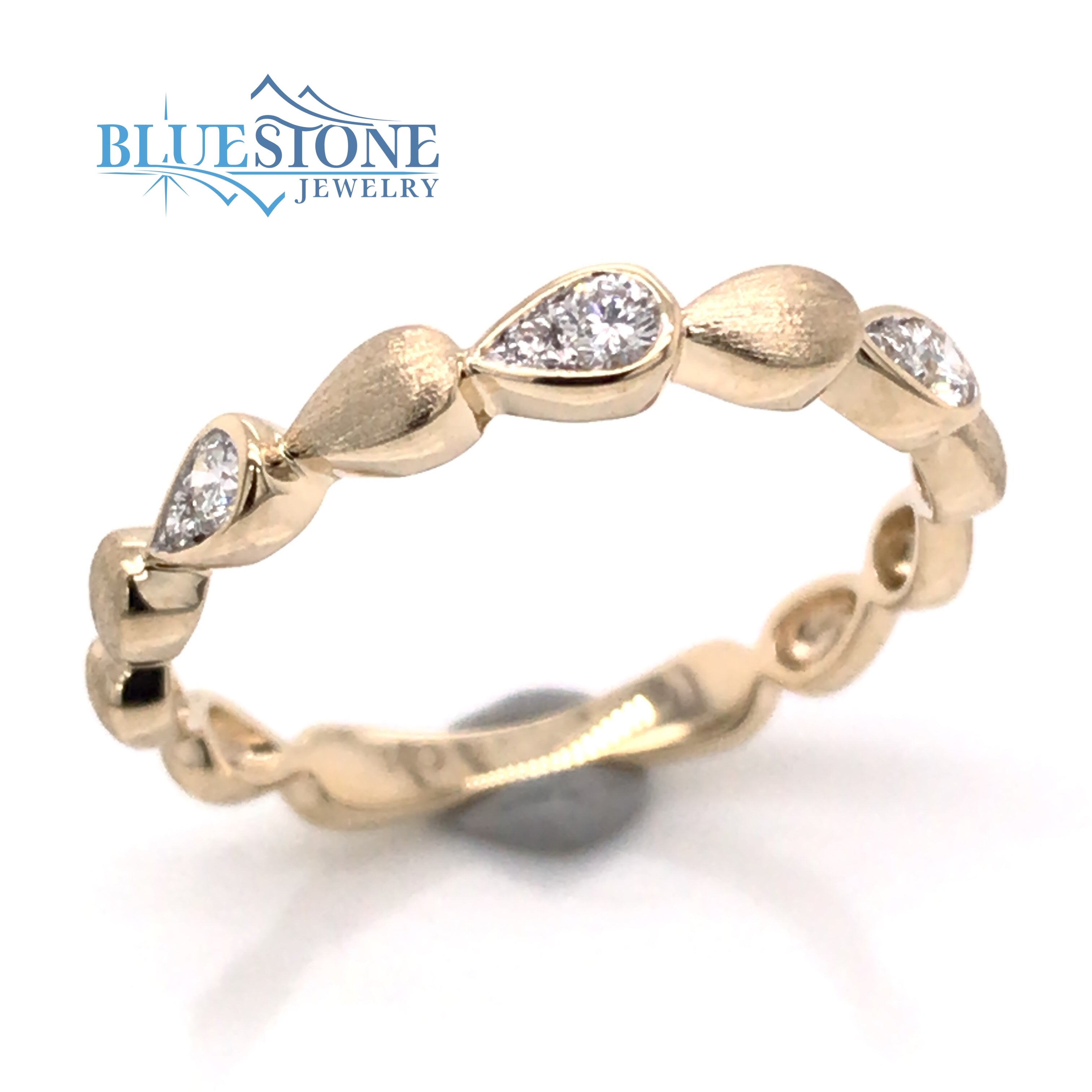 14 Karat Yellow Gold Ring with 6 Round Diamonds at 0.14 Carats Total Weight. Features High Polish and Satin Finish.Ring Size 6.5.