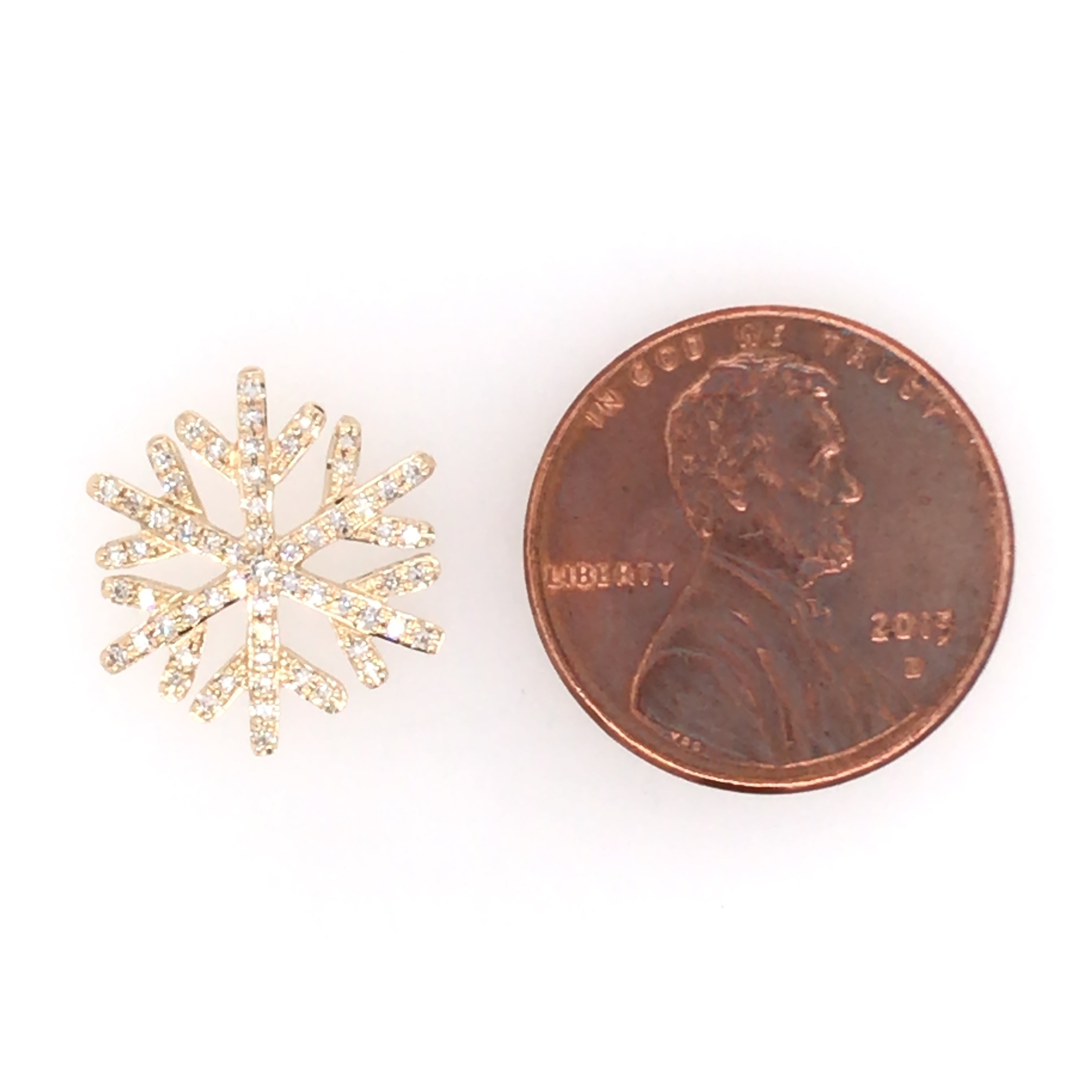 14 Karat Yellow Gold Snowflake Pendant with 61 Round Diamonds at 0.15 Carats Total Weight. Measures Approximately 0.25" x 0.25". Chain is sold separately. Comes on an 18 inch DISPLAY chain.