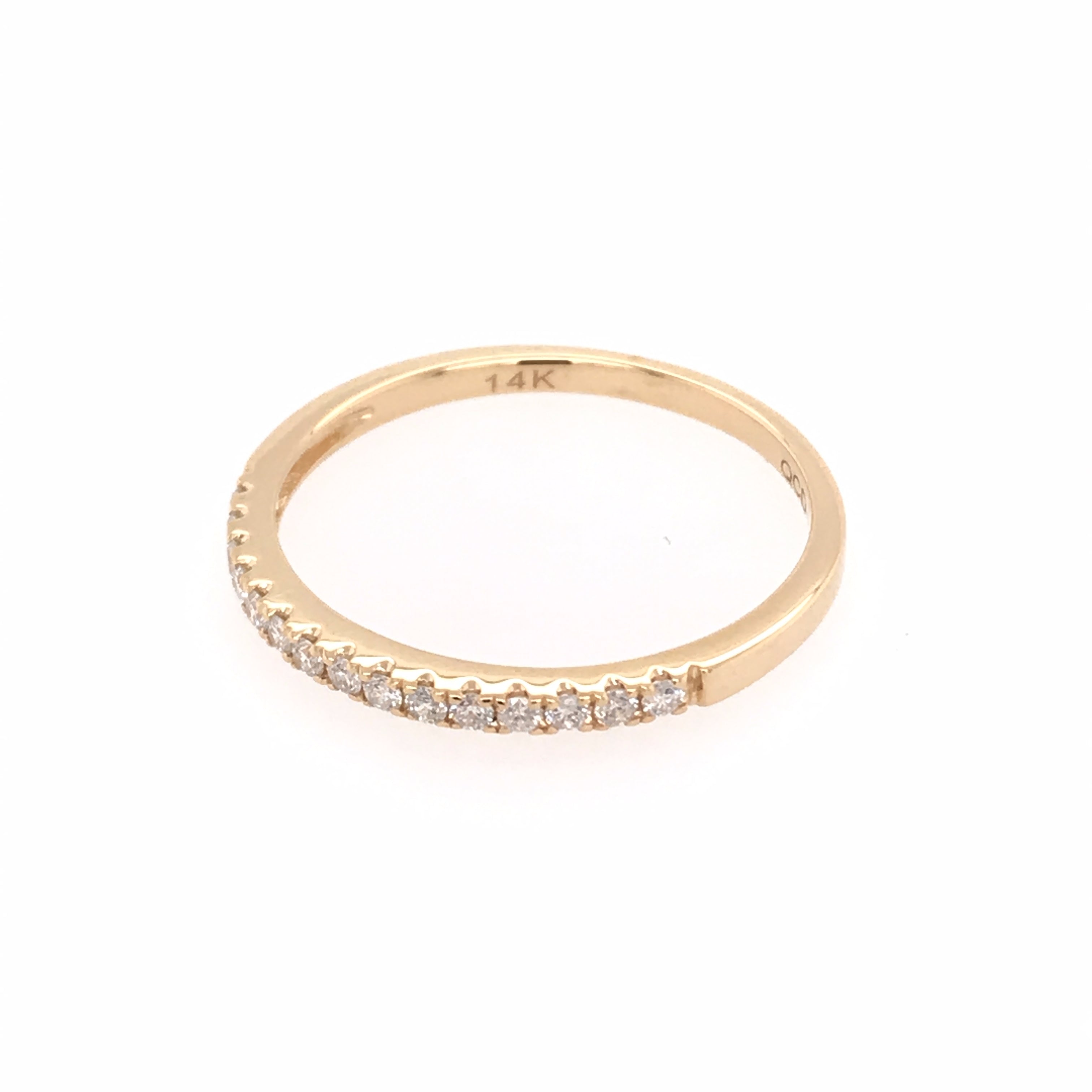 14 Karat Yellow Gold Wedding Band with 0.16 Total Carat Weight of Round Diamonds. 1.6mm Wide.Ring Size 7.