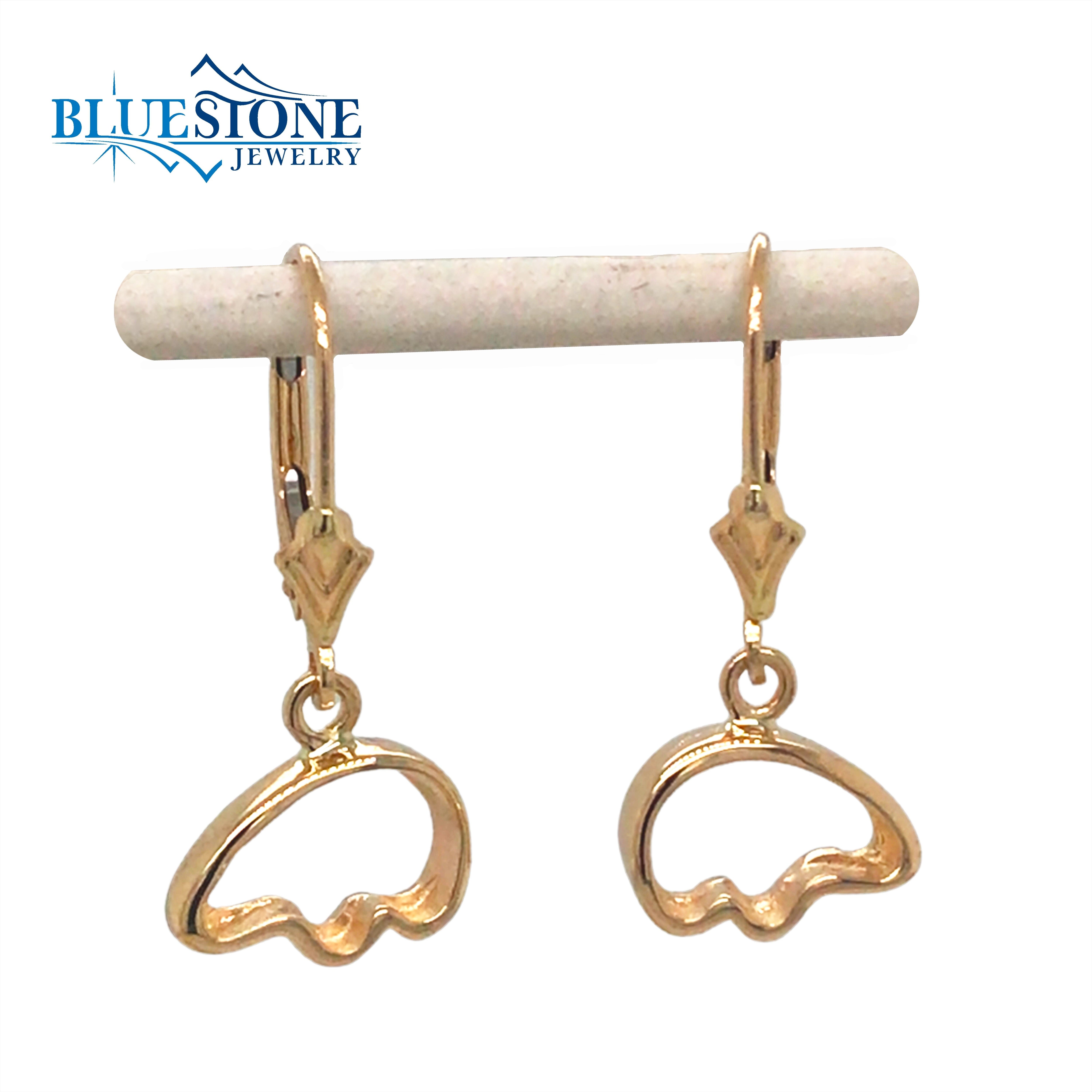 14 Karat Yellow Gold Lever Back Earrings with 2 Bear Shaped Outlines. Bears Measure 1 Centimeter Wide.