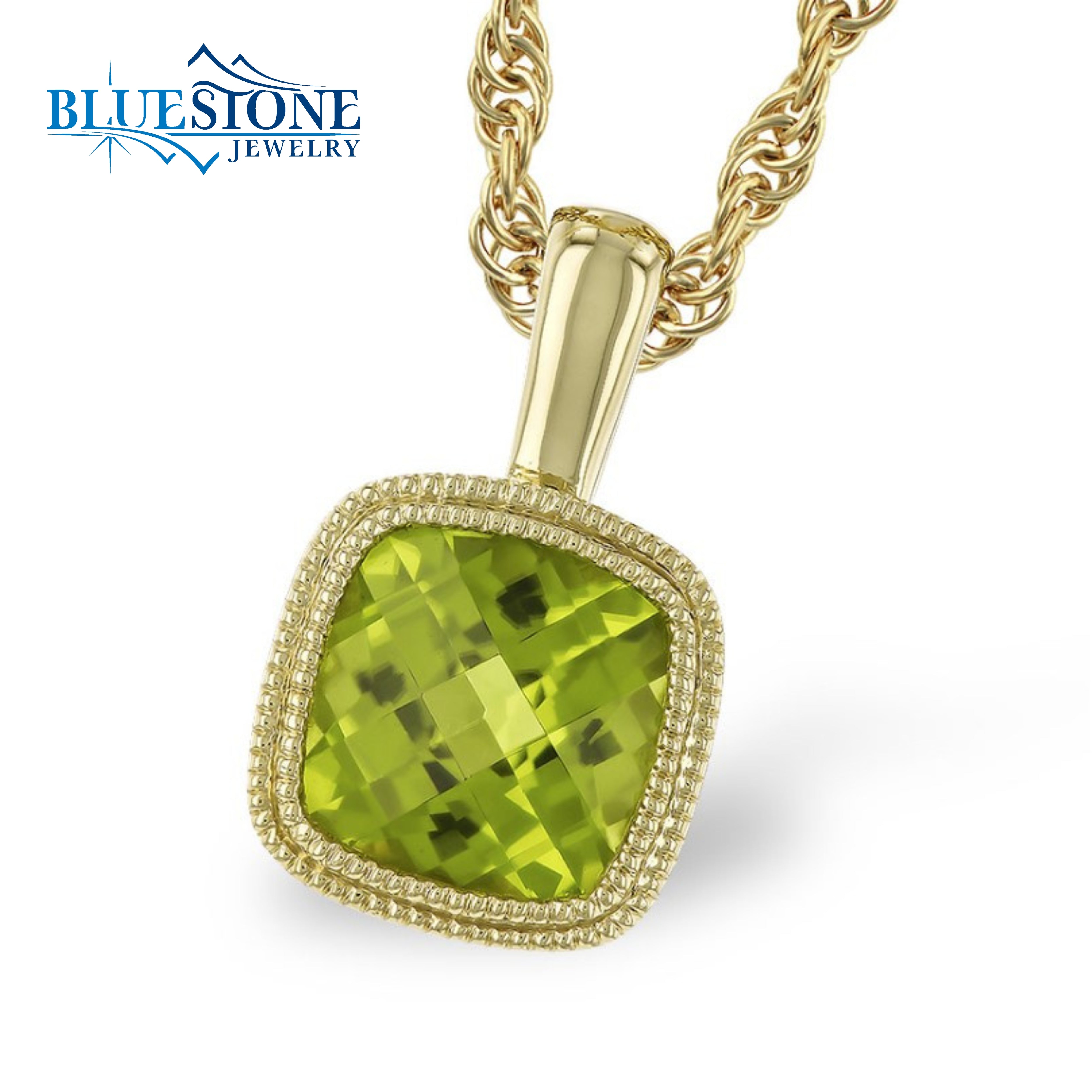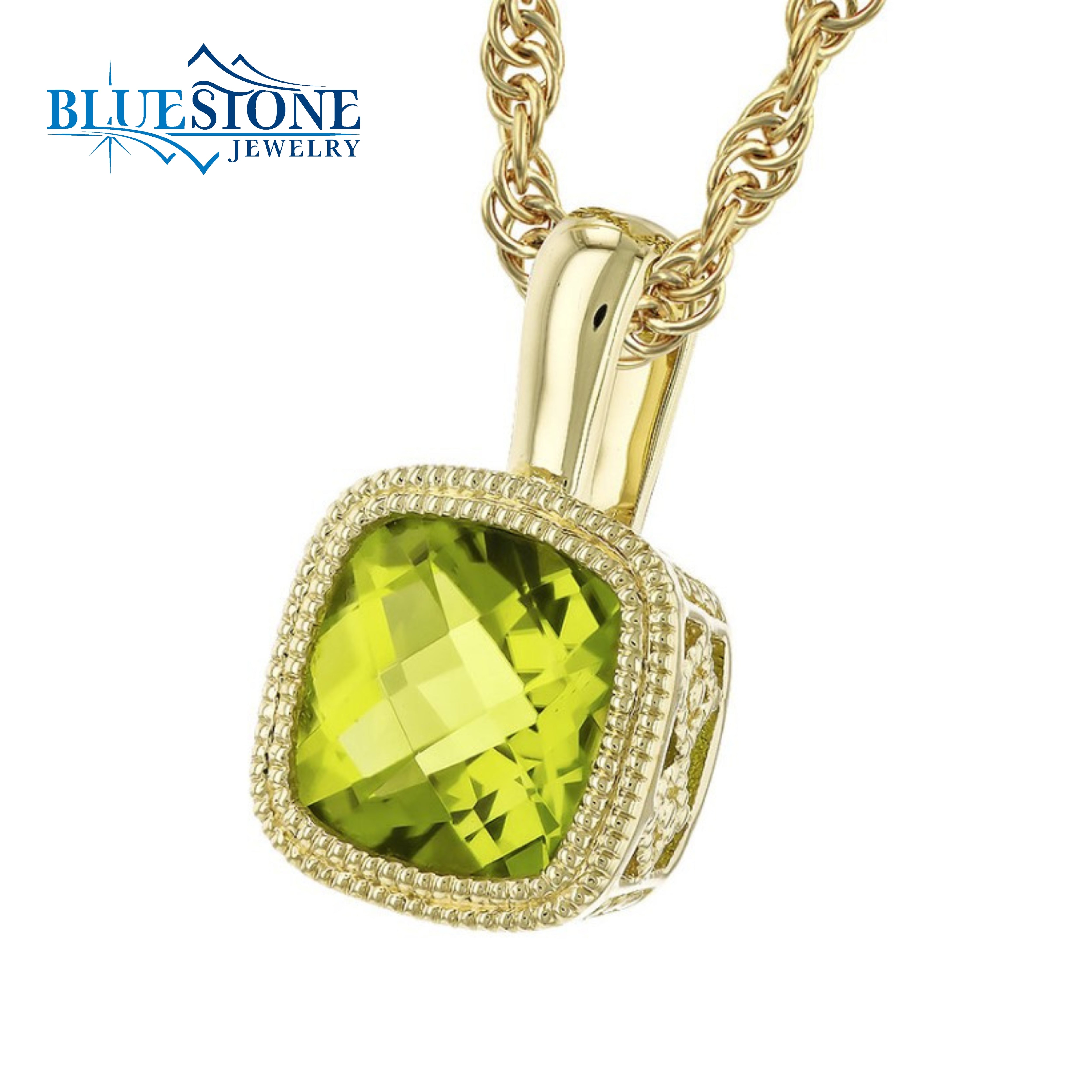 14 Karat Yellow Gold Pendant with One 0.95 Carat 6mm Cushion Cut Peridot. Chain is Sold Separately. Comes on a metal alloy DISPLAY chain.