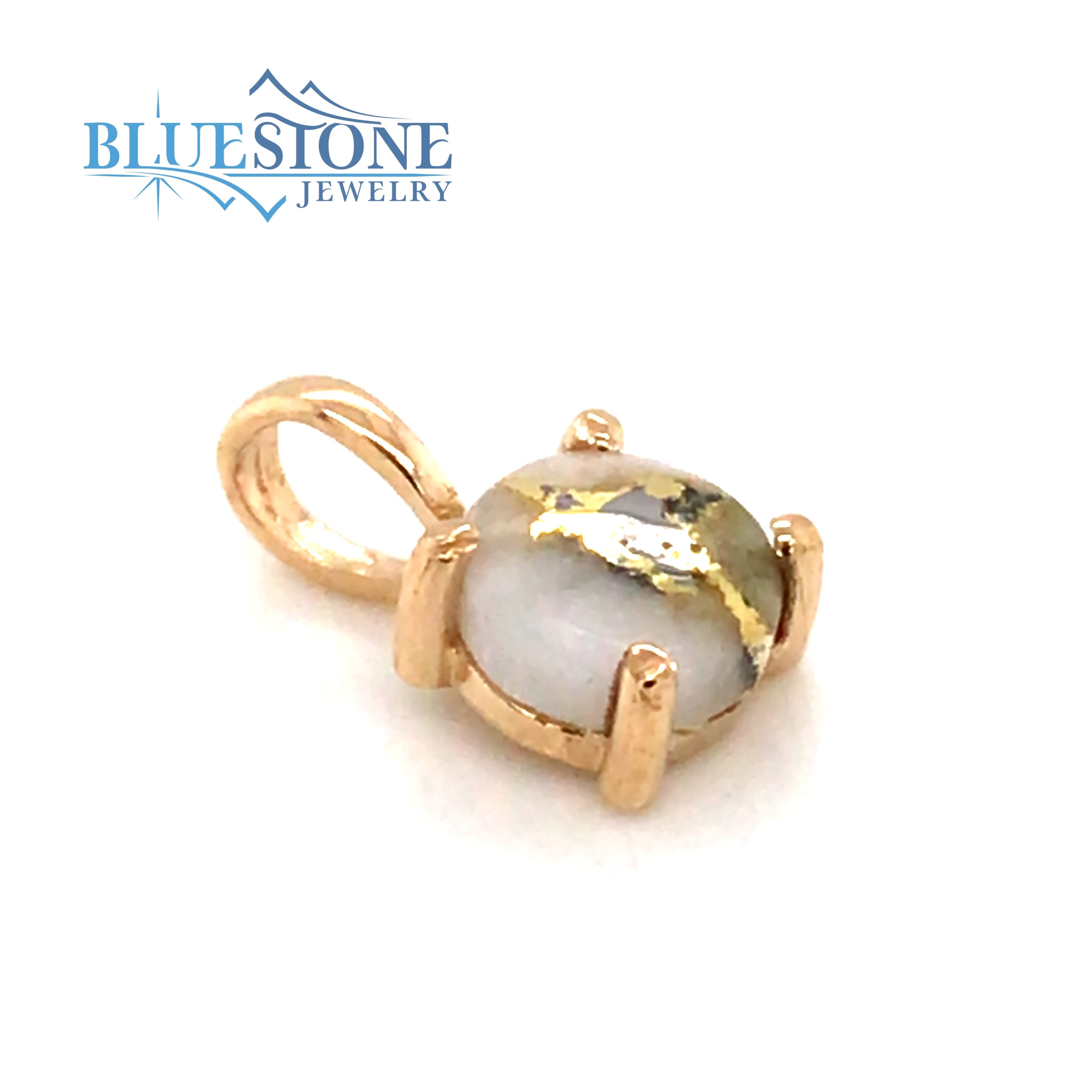 14 Karat Yellow Gold Pendant with One 6mm Round Gold Quartz Gemstone mined from the original Sixteen to One Mine here within the Tahoe National Forest in California.