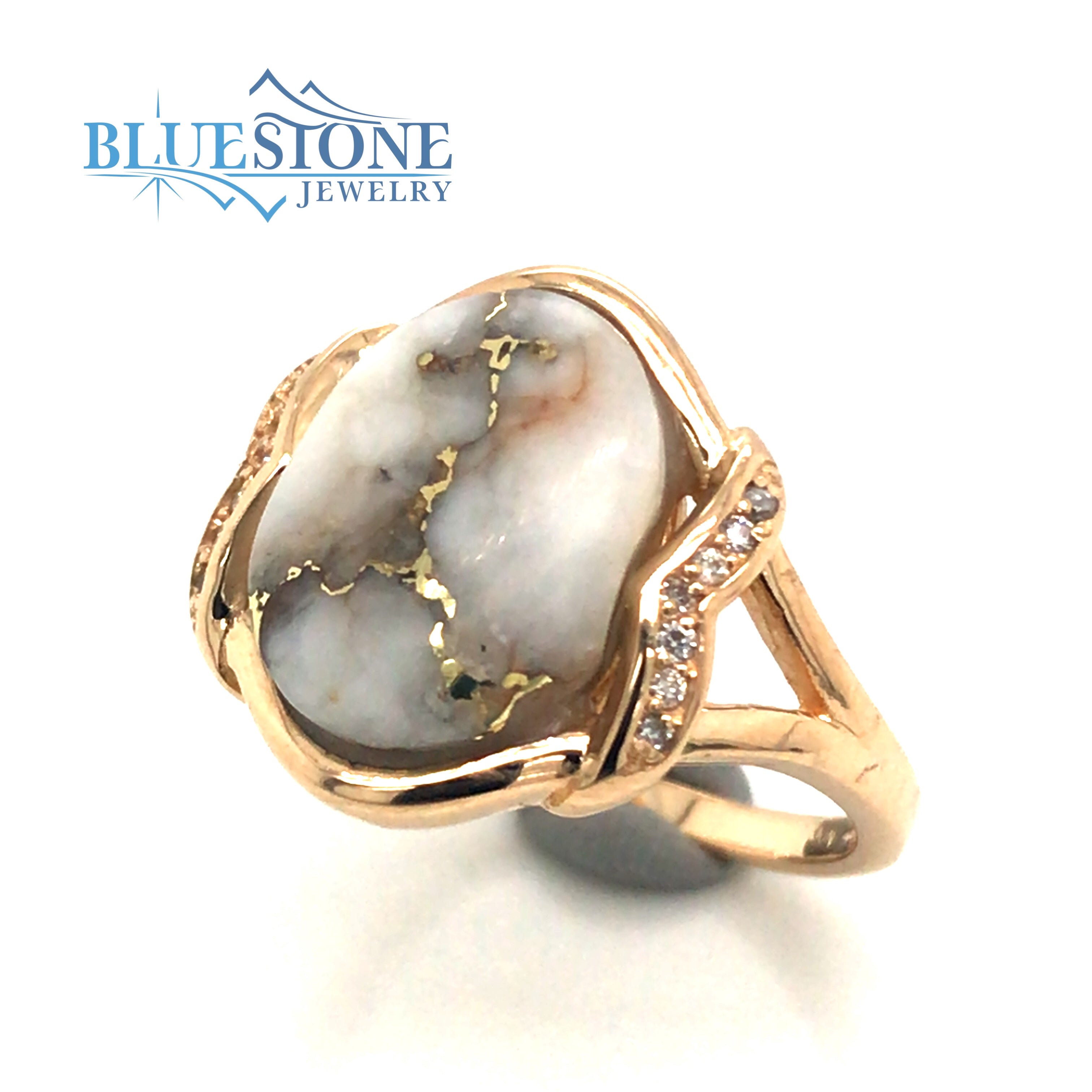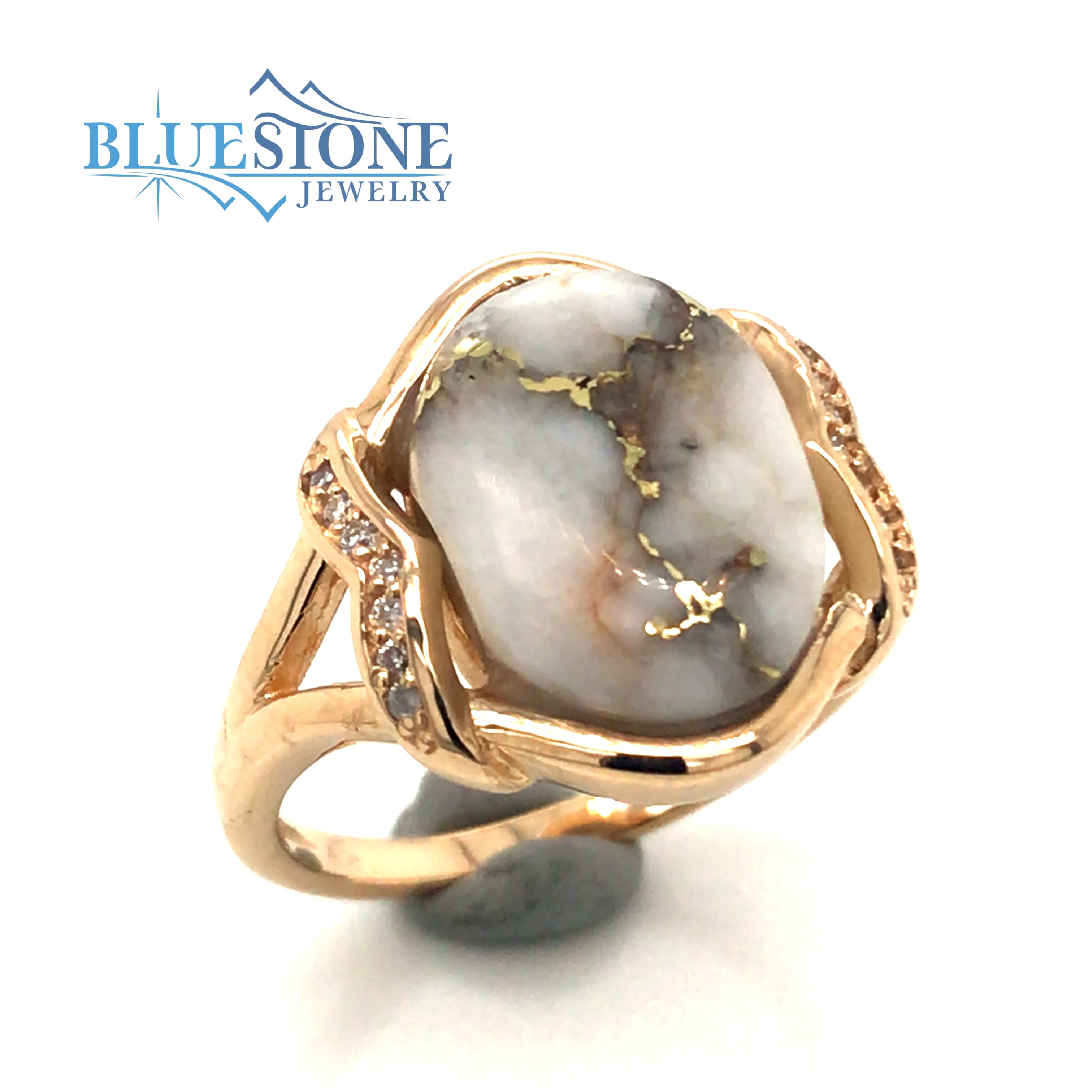 14 Karat Yellow Gold Fashion Ring with One Oval Gold Quartz from the local Sixteen to One Mine & 14 Round Diamonds at 0.07 Carats Total WeightRing Size 7.*Natural Gold Quartz gemstone appearance may vary from stone to stone*BLUE DOT ITEM
