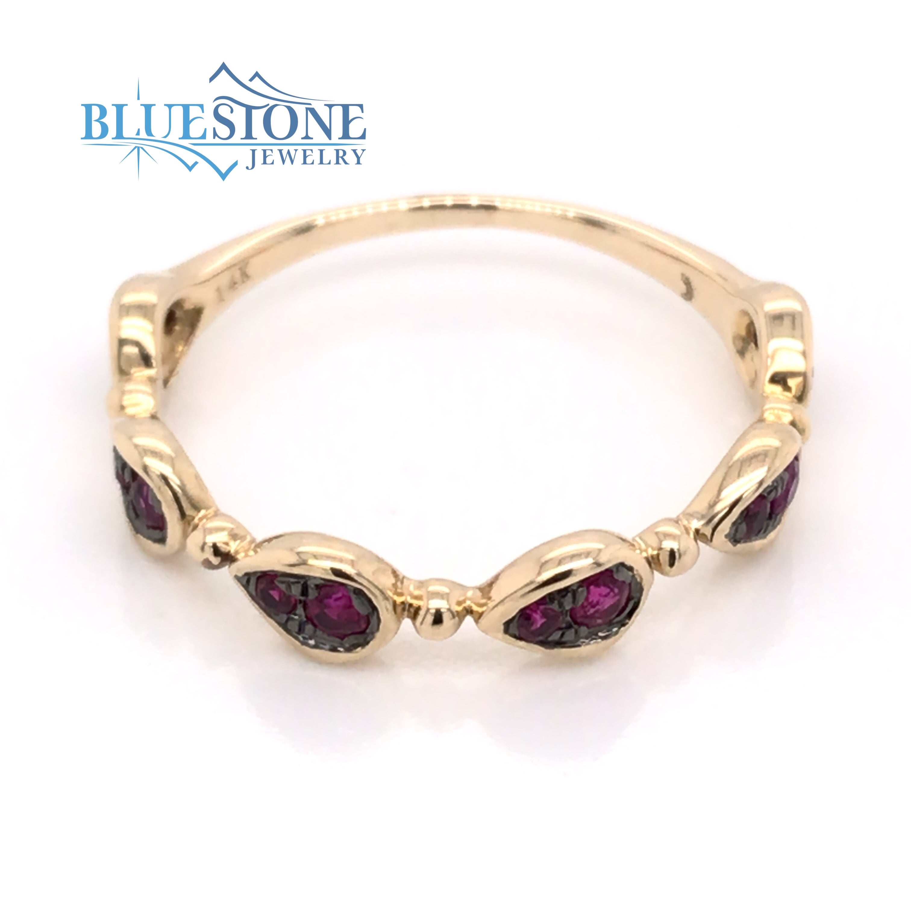 14 Karat Yellow Gold Ring with 12 Round Rubies at 0.23 Total Carat Weight and Black Rhodium Details.Ring Size 6.5.