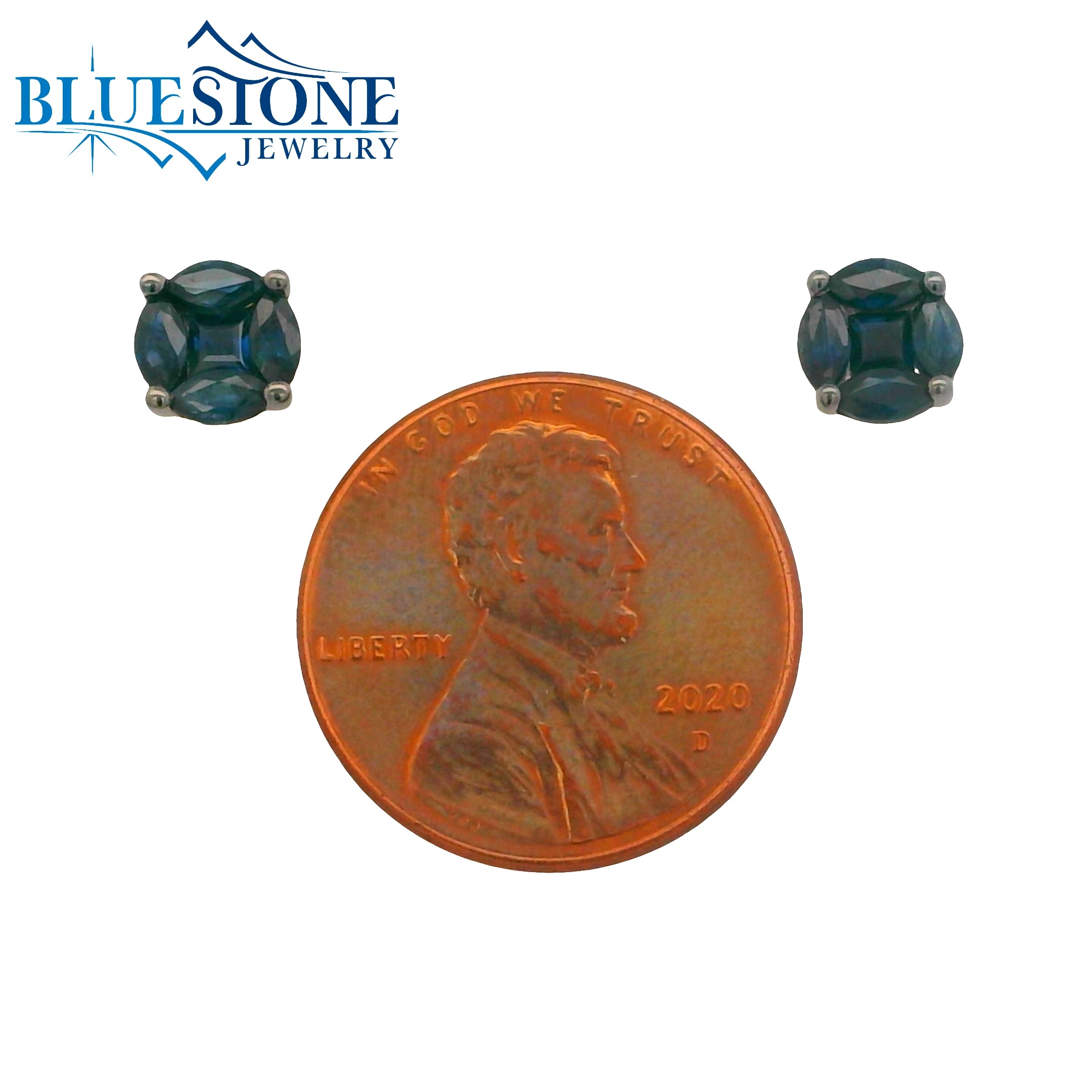 14 Karat Yellow Gold Stud Earrings with 10 Blue Sapphires at 1.19 Carats Total Weight. Measure 6.4mm Wide.