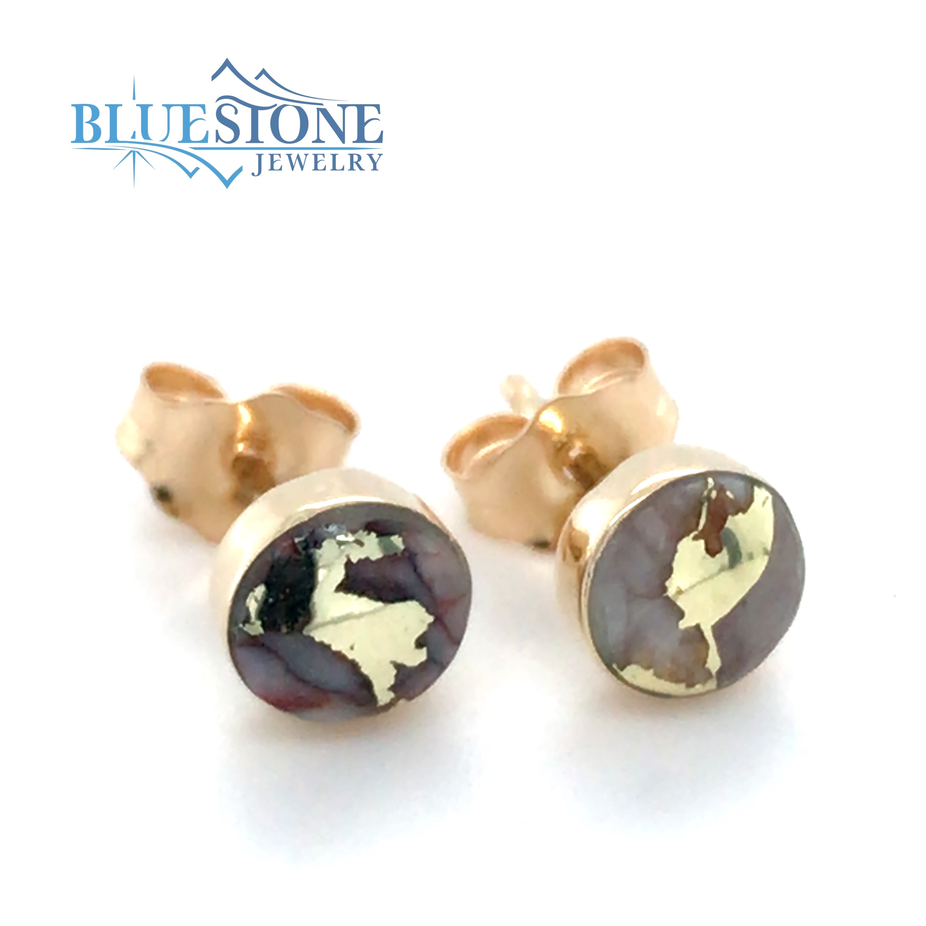 14 Karat Yellow Gold Stud Earrings with Two 5mm Round Gold Quartz gemstones from the local Sixteen to One Mine here in California! *Natural Gold Quartz gemstone appearance may vary from stone to stone*