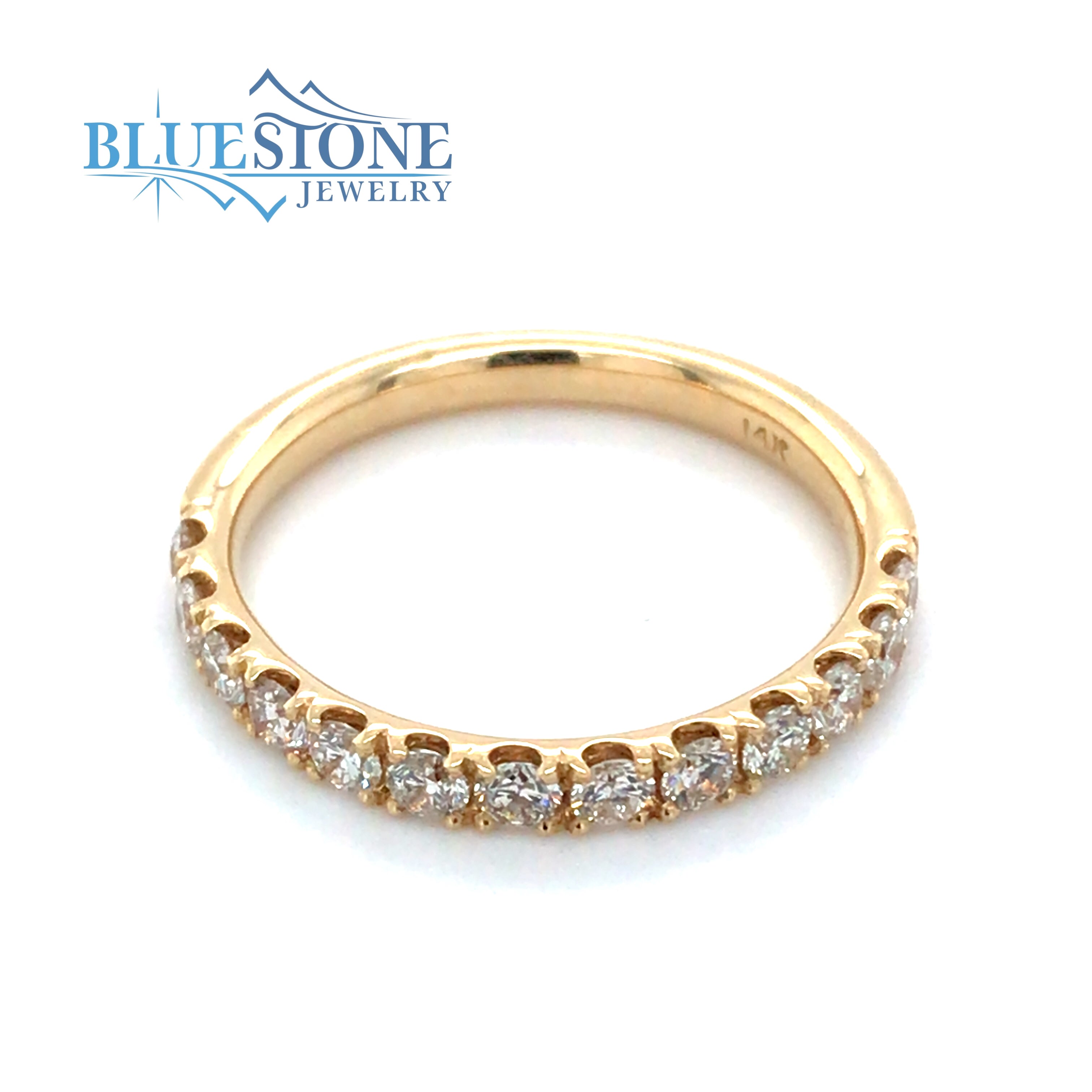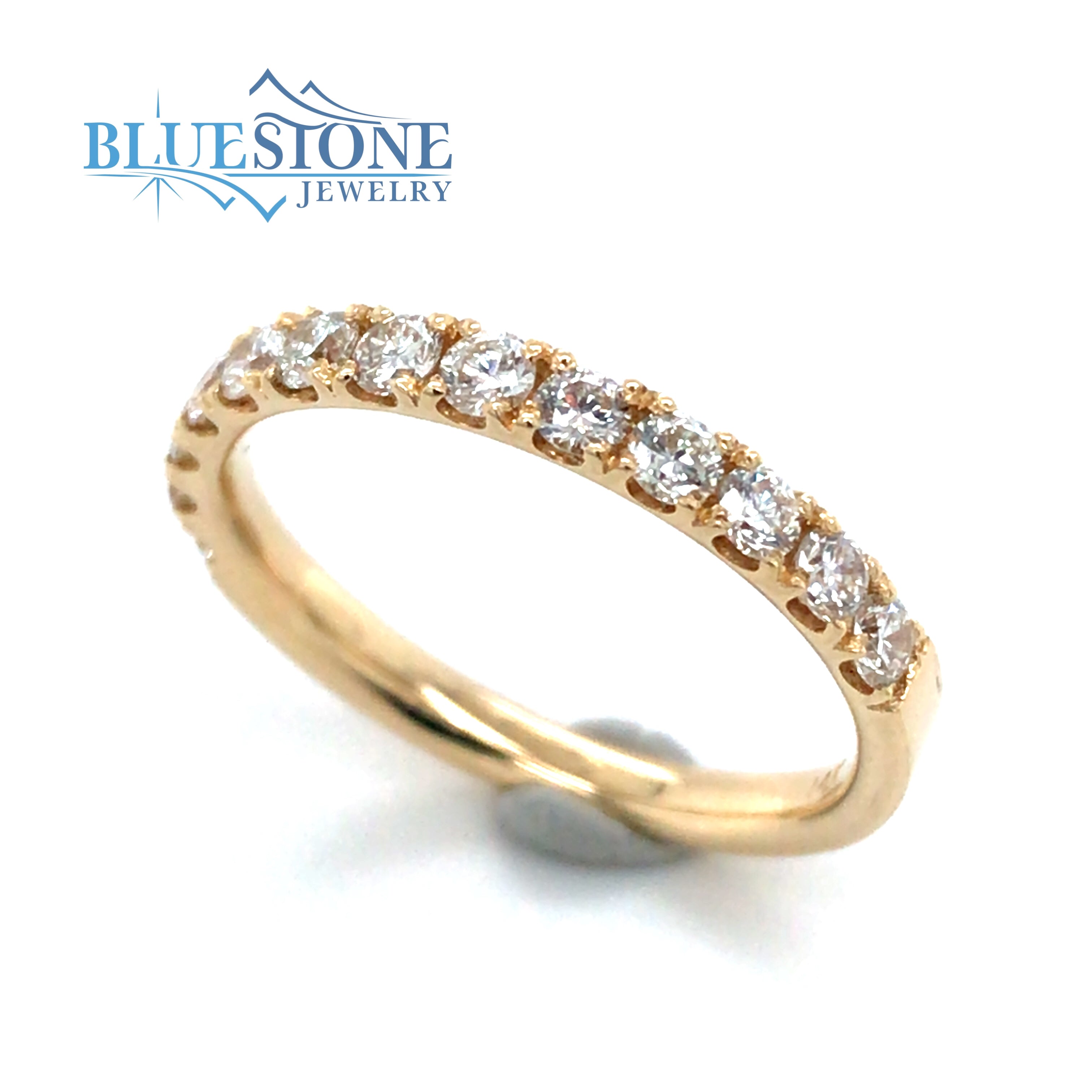 14 Karat Yellow Gold Wedding Band or Fashion Ring with 13 Round Natural Diamonds at 0.60 Carats Total Weight G SI Quality Diamonds. 2.20 Total Gram Weight.Ring Size 6.5.