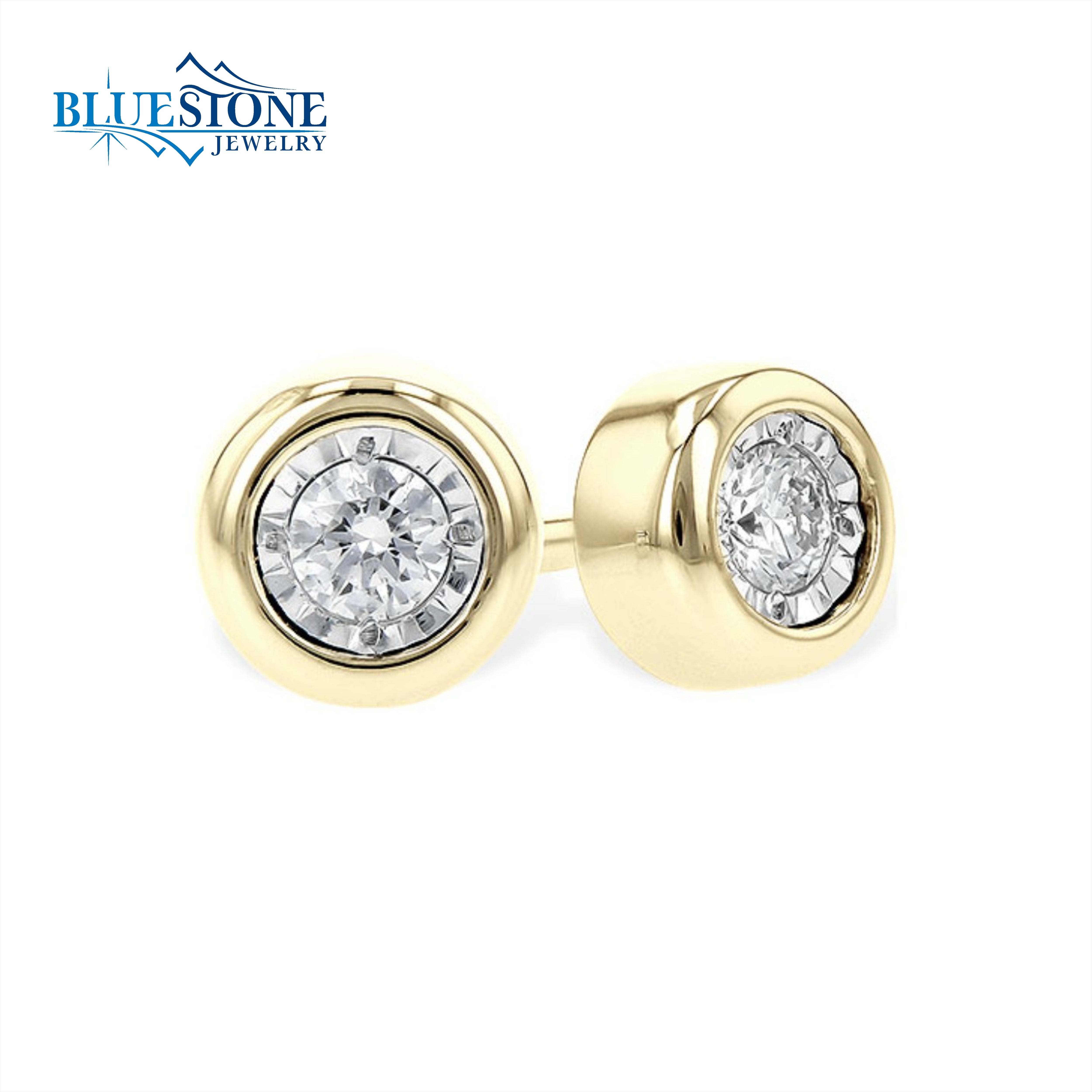 14K Gold Bezel Diamond Earrings - 0.10 Carats