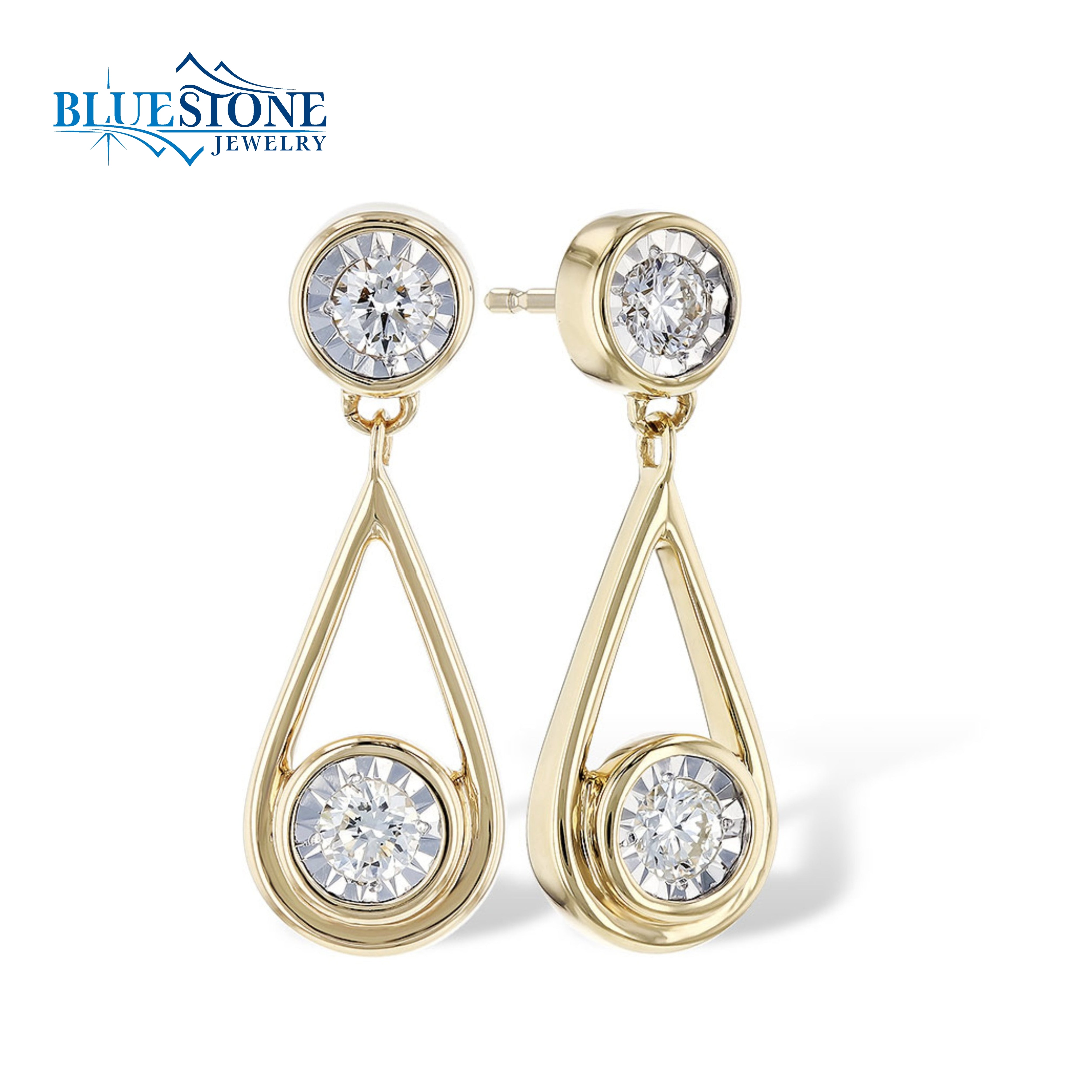 14K Gold Bezel Stud Drop Diamond Earrings - 0.25 ctw