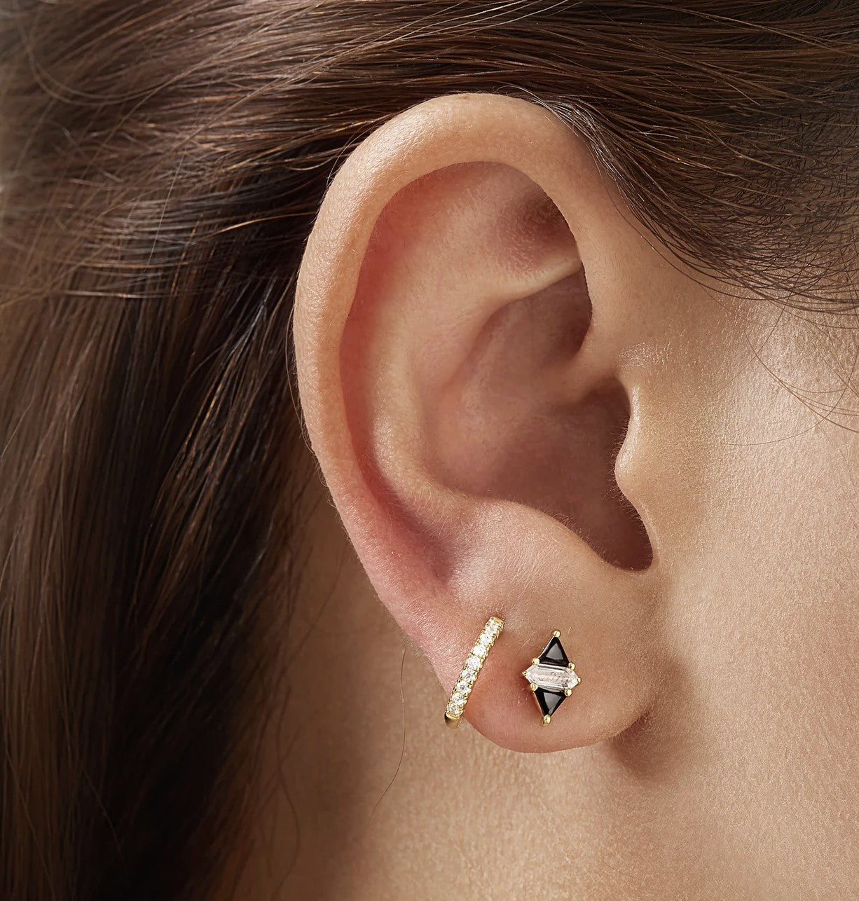 14K Gold Plated Hoop Earrings w/ CZ's - 8.5mm
