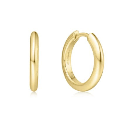 Sterling Silver and 14K Yellow Gold Plated Medium Tube Huggie Hoop Earrings.Earrings Measure Approximately 0.63" x 0.80".