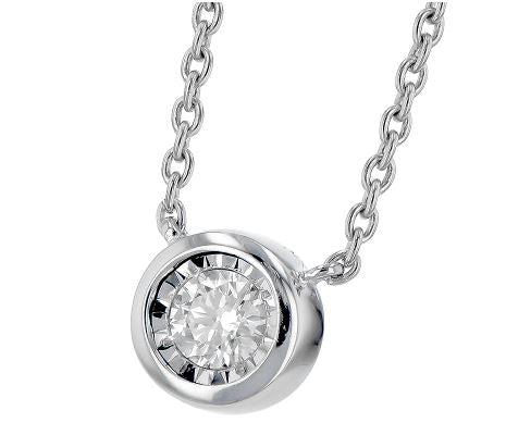 14 Karat White Gold Necklace with a 0.15 Carat Round Diamond of G Si Quality with a Fixed 18 Inch 14 Karat Rolo Chain.Can be worn at 16", 17" and 18 inches.