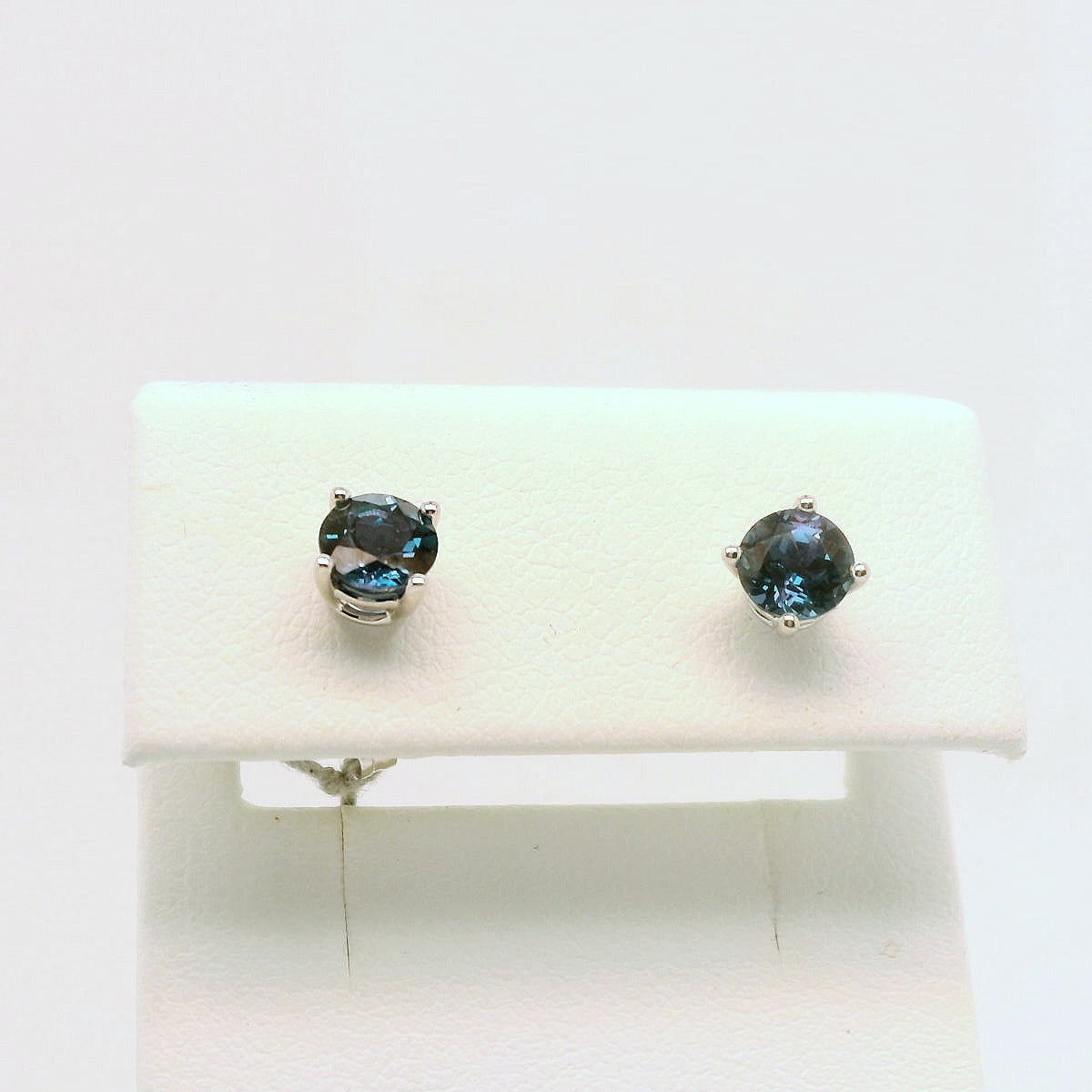 14 Karat White Gold Stud Earrings with 2 Round Created Alexandrite Gemstones At 1.12 Total Carat Weight.Set In 4 Prongs.