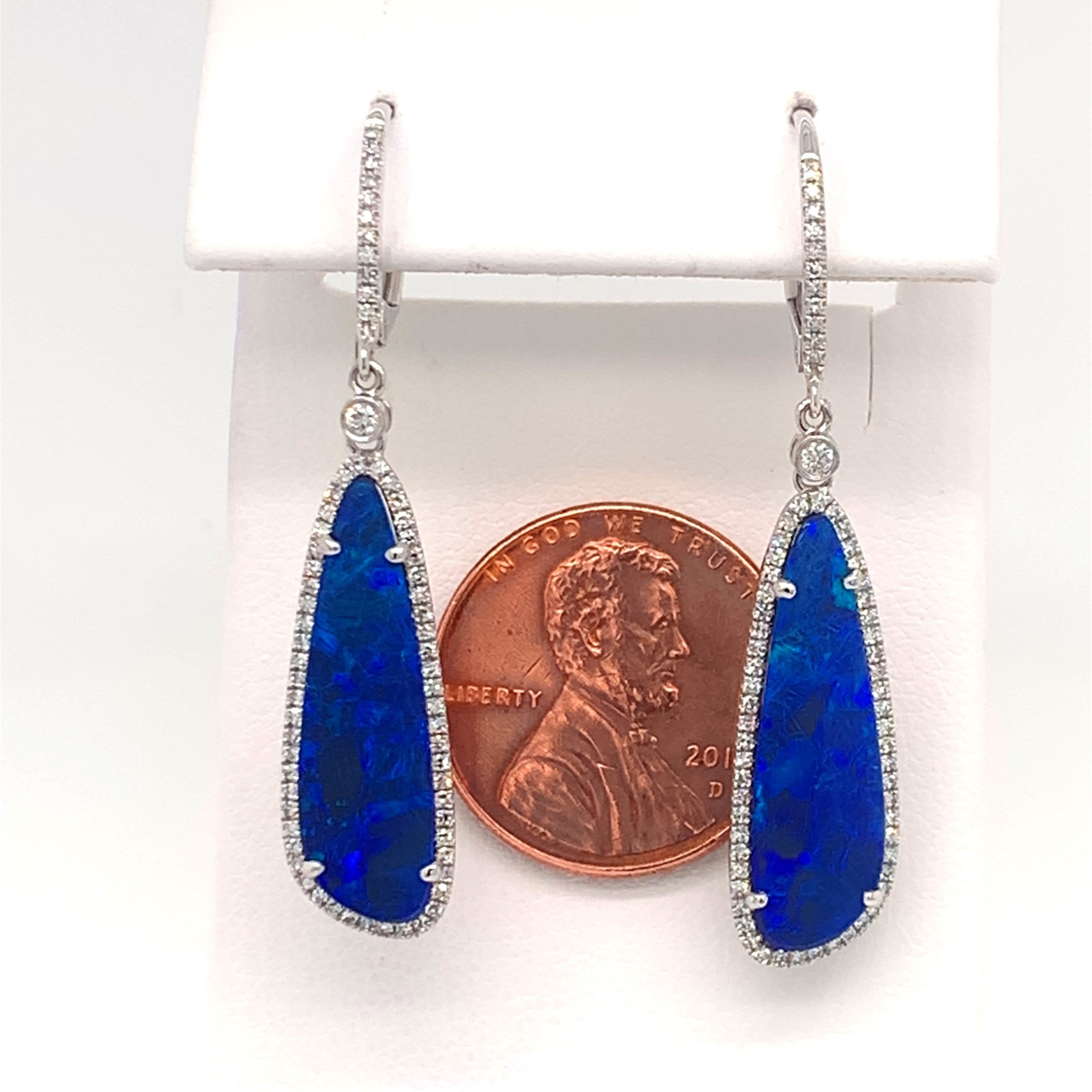 14 Karat White Gold Earrings with Two Doublet Black Australian Opals at 2.62 Carats Total Weight & 0.34 Carats Total Weight of Round Diamonds G/H SI quality.***50% OFF***