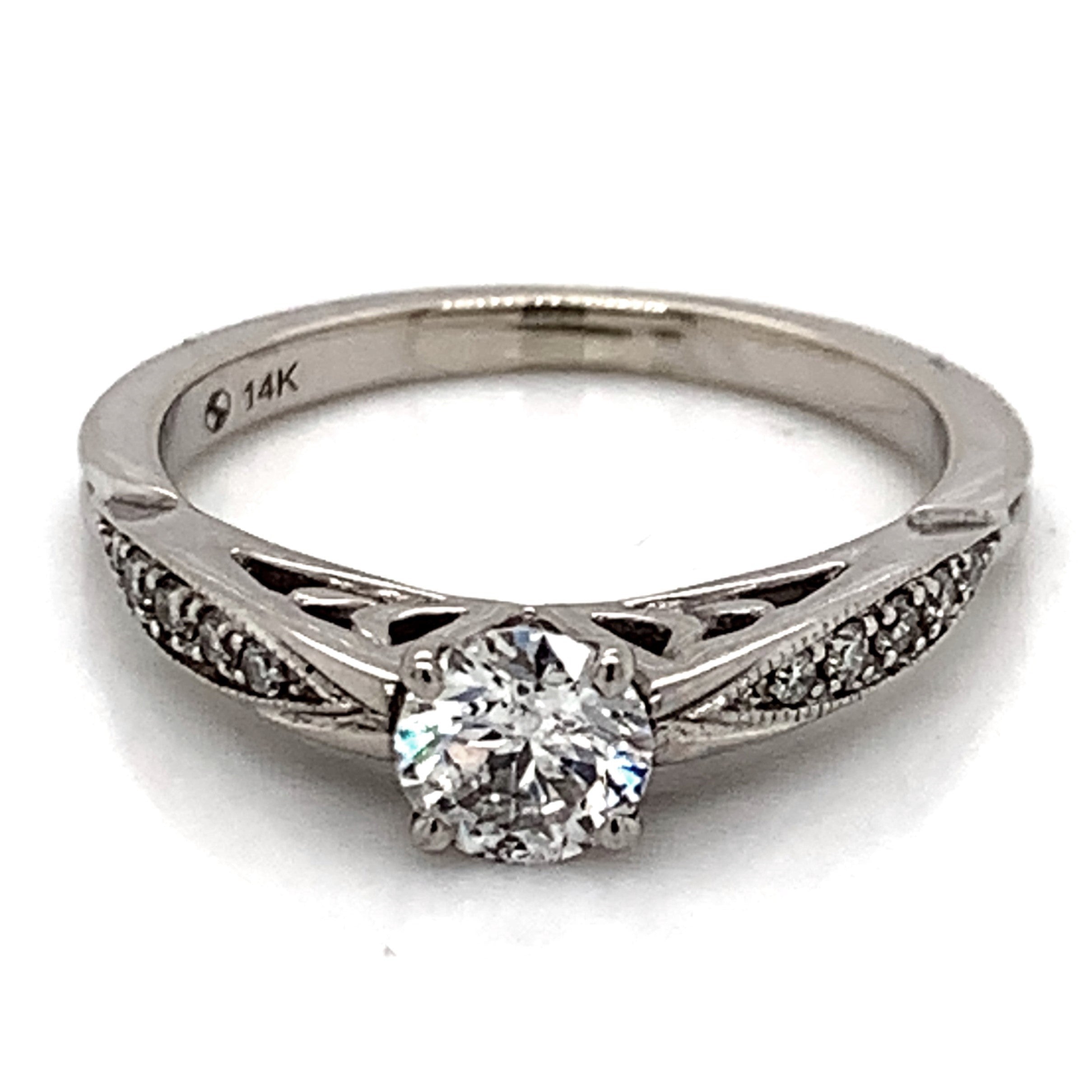 14K White Gold Engagement Ring w/ a 0.46 Carat Round Diamond