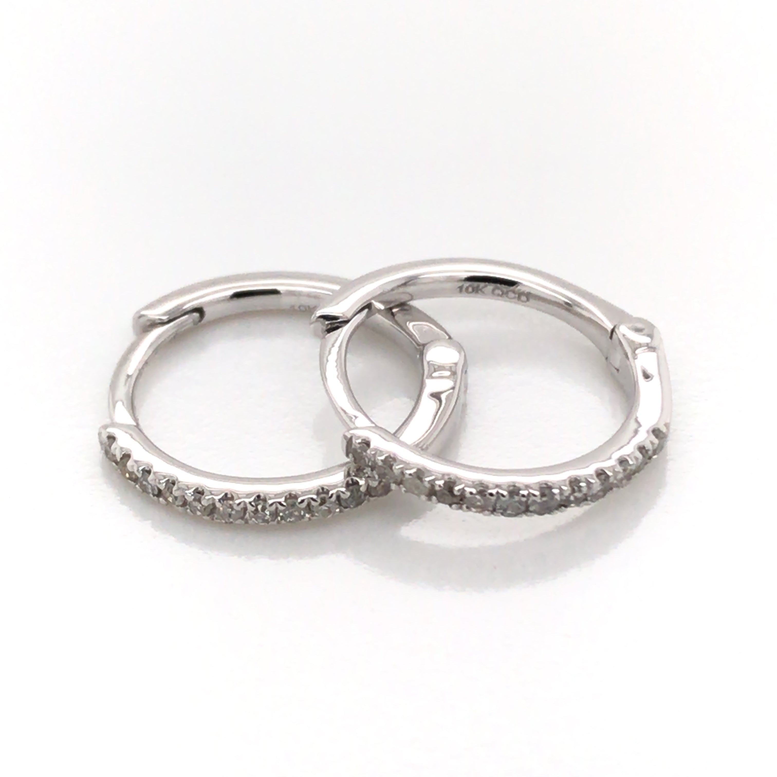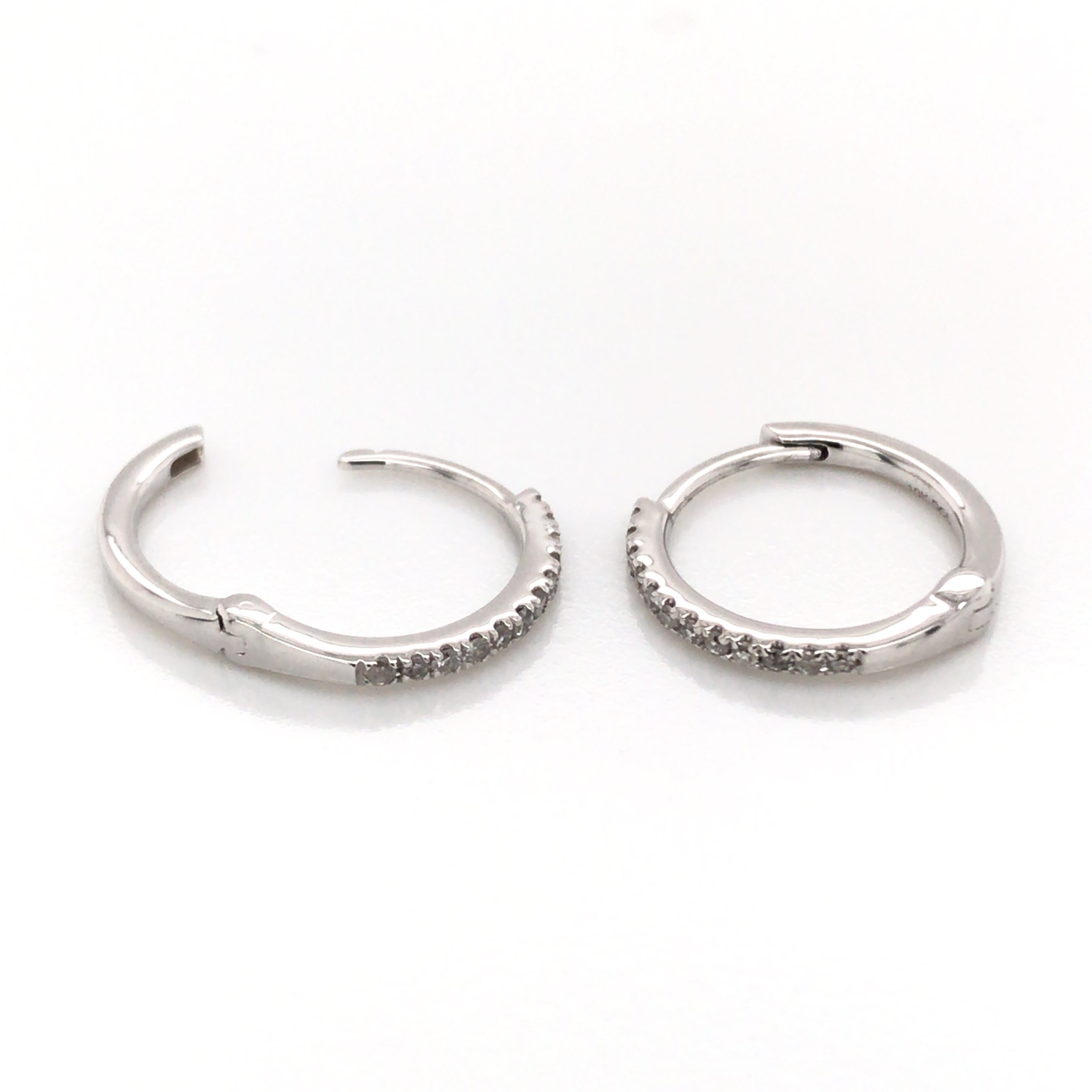 14 Karat White Gold Huggie Earrings with 24 Round Diamonds at an approximate Total Weight of 0.09 Carats.