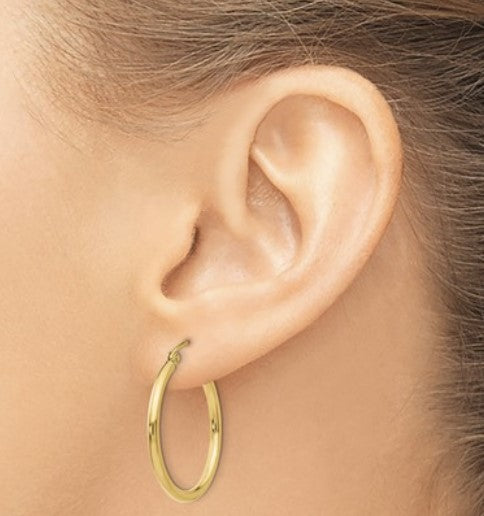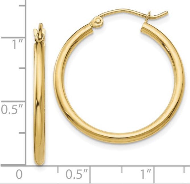 14K Yellow Gold 2mm Tube Hoop Earrings (25mm tall)