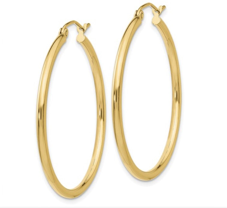 14K Yellow Gold 2mm Tube Hoop Earrings- 35mm