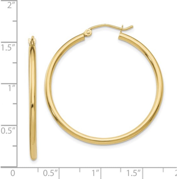14K Yellow Gold 2mm Tube Hoop Earrings(35mm tall)