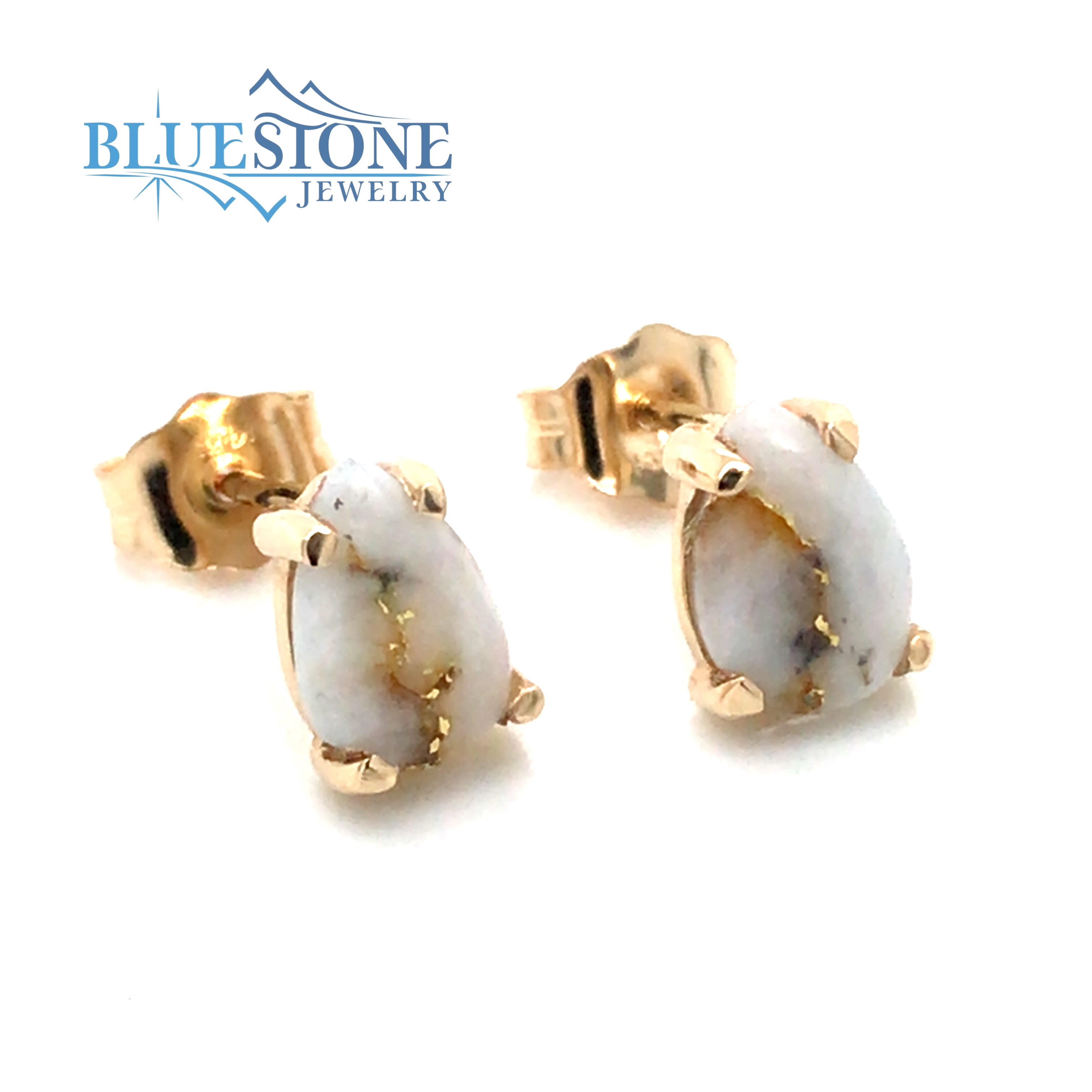 14 Karat Yellow Gold Stud Earrings with Two 7mm x 5mm Pear Cut Gold Quartz Gemstones from the local Sixteen to One California Mine within the Tahoe National Forest. Stone's Appearance May Vary.