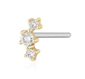 14 Karat Yellow Gold Single Flat Back Stud Earring with Three Lab Grown Diamonds. Lab Grown Diamonds Measures 1.4mm and 1.9mm at 0.05 Total Carat Weight. Earring Measures 5.9mm x 2.6mm.