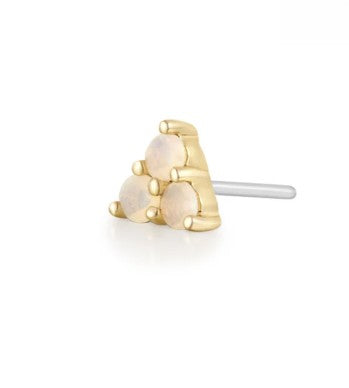 14 Karat Yellow Gold Single Flat Back Stud Earring with Three Cluster Round Cut Natural Opal Gemstones. Opals Measure 1.5mm.Total Carat Weight of Opals is 0.06ct.Earring Measures 3mm x 3.3mm.