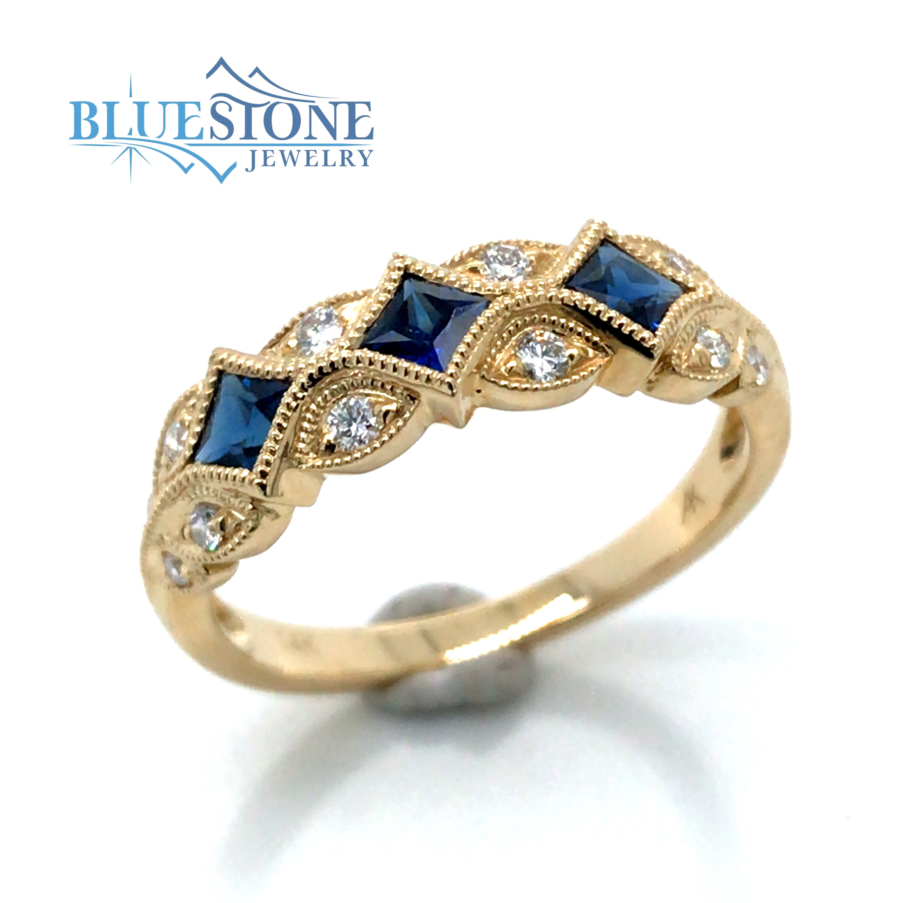 14K Yellow Gold Ring w/Sapphires and Diamonds- Size 7