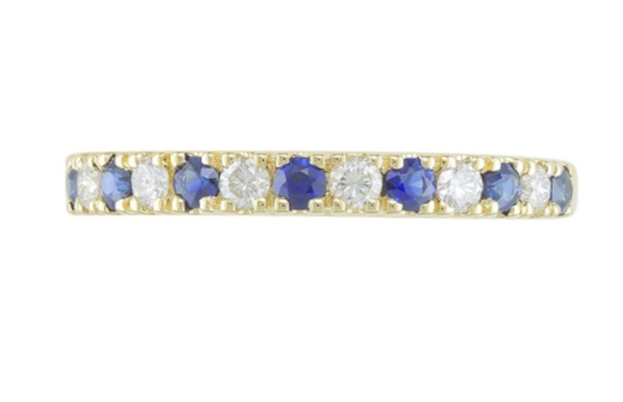 14 Karat Yellow Gold Ring with 8 Round Sapphire Gemstones At 0.33 Total Carat Weight, Along With 7 Round Diamonds At 0.23 Total Carat Weight.Ring Size 6.5.Can be ordered in other sizes and metal types.