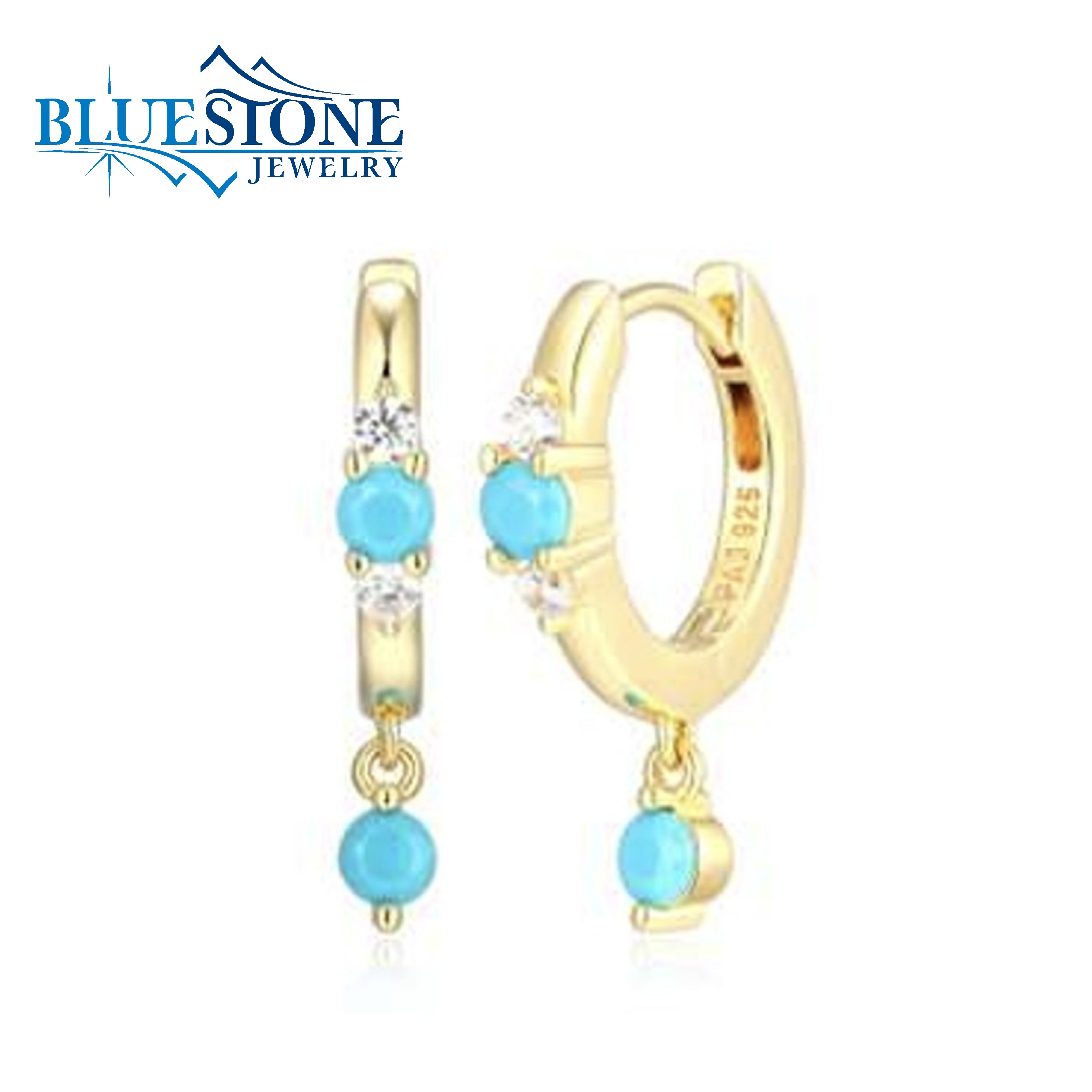 14kt Gold Plated Huggy Earrings with Turquoise & CZs