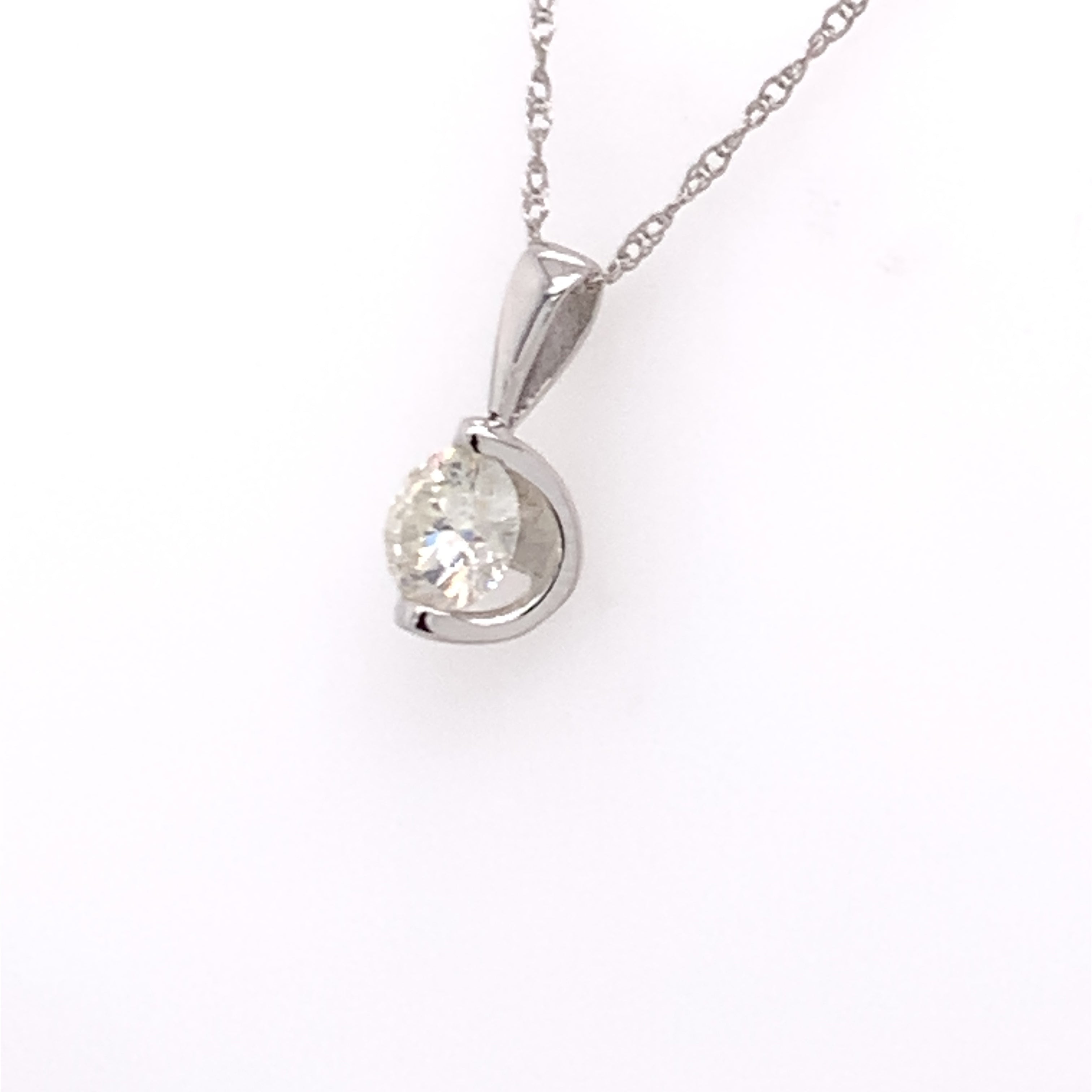 14 Karat White Gold Half Moon Pendant with a 0.50 Carat Round Diamond H SI1 Quality Diamond.***Chain sold separately from pendant***