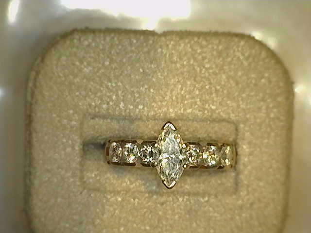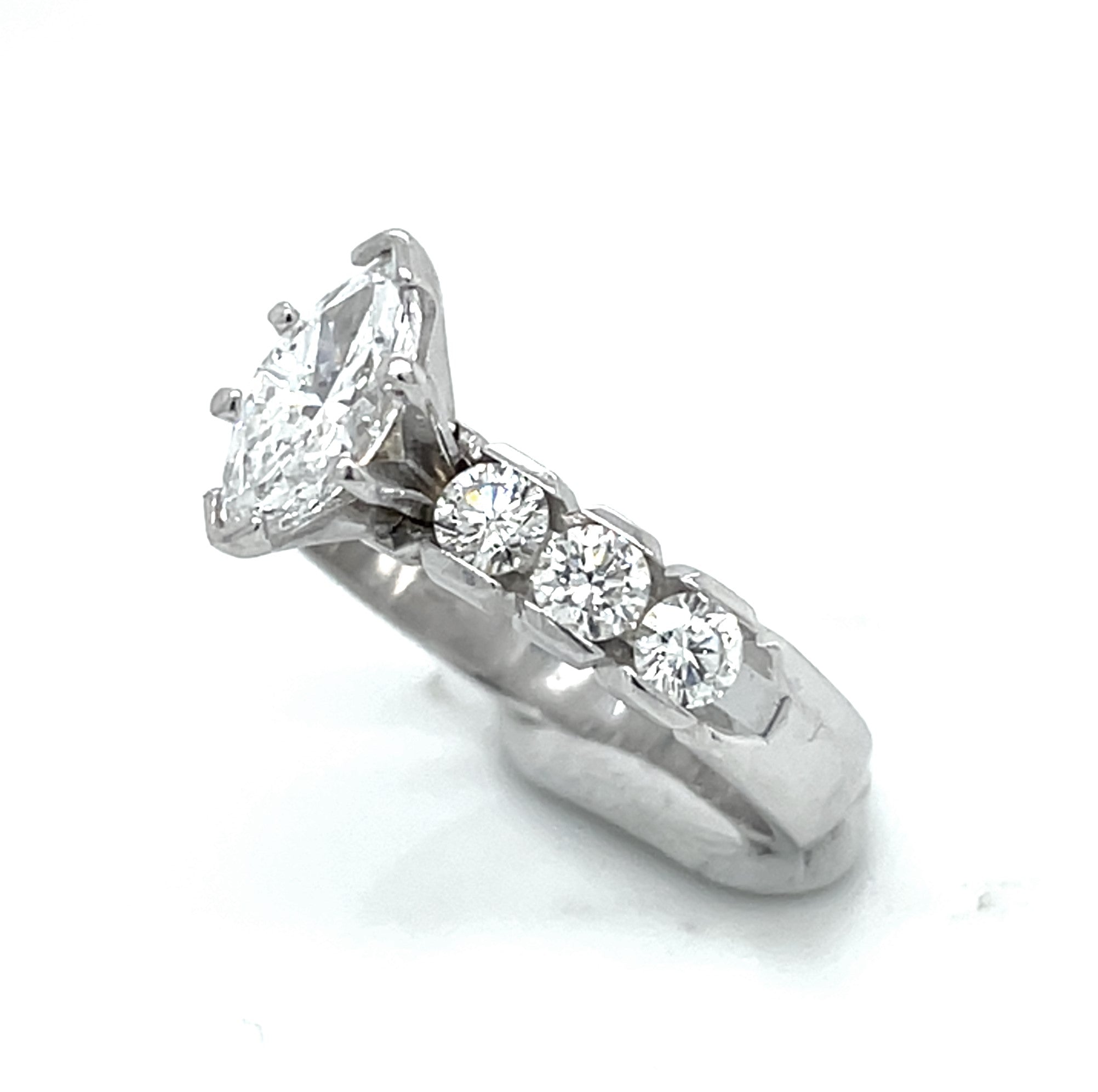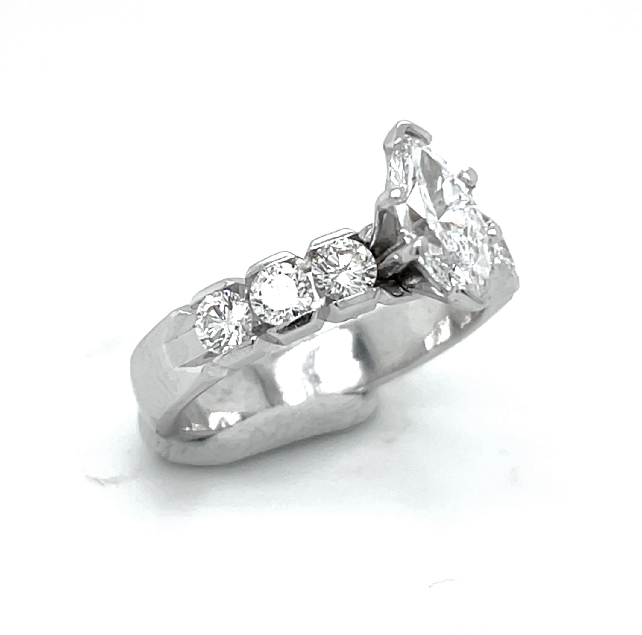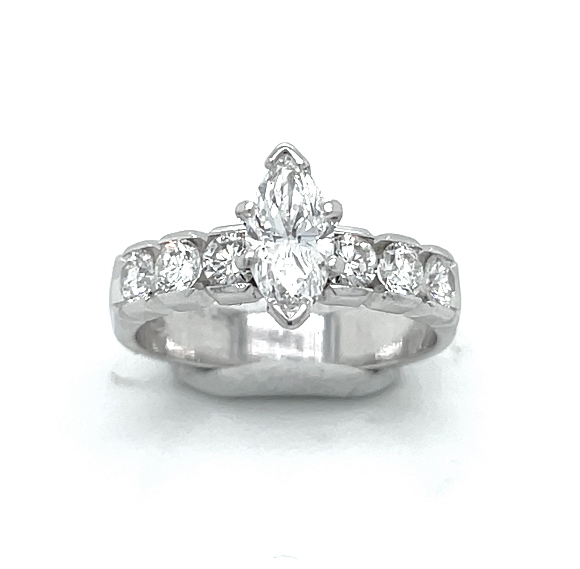 Lady's 14 Karat White Gold Engagement Ring with One 0.60 Carat Maquise Cut Center Diamond G/H VS2 Quality with Six Round Diamonds at 0.62 Carats Total Weight G/H VVS2 QualityRing Size 5.75