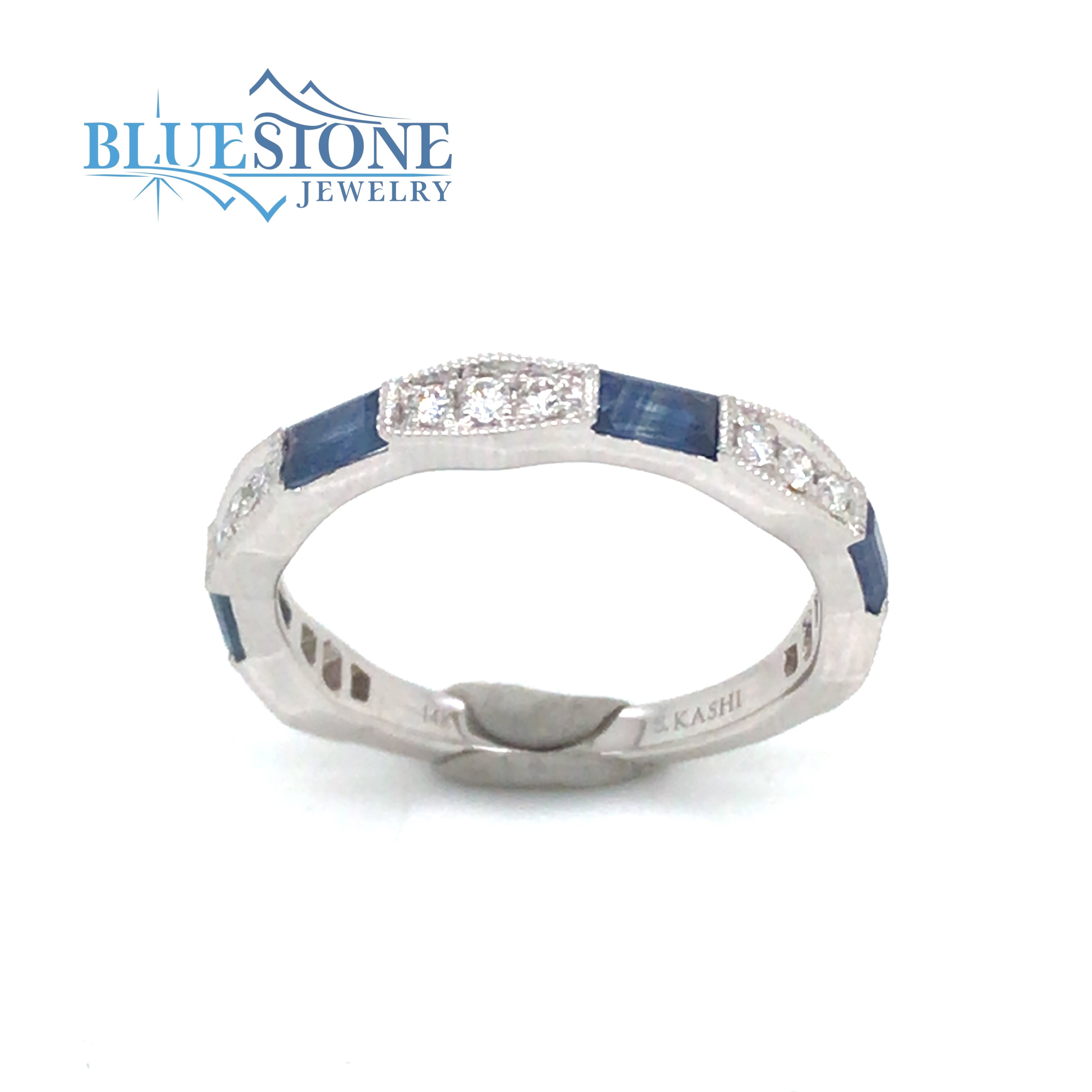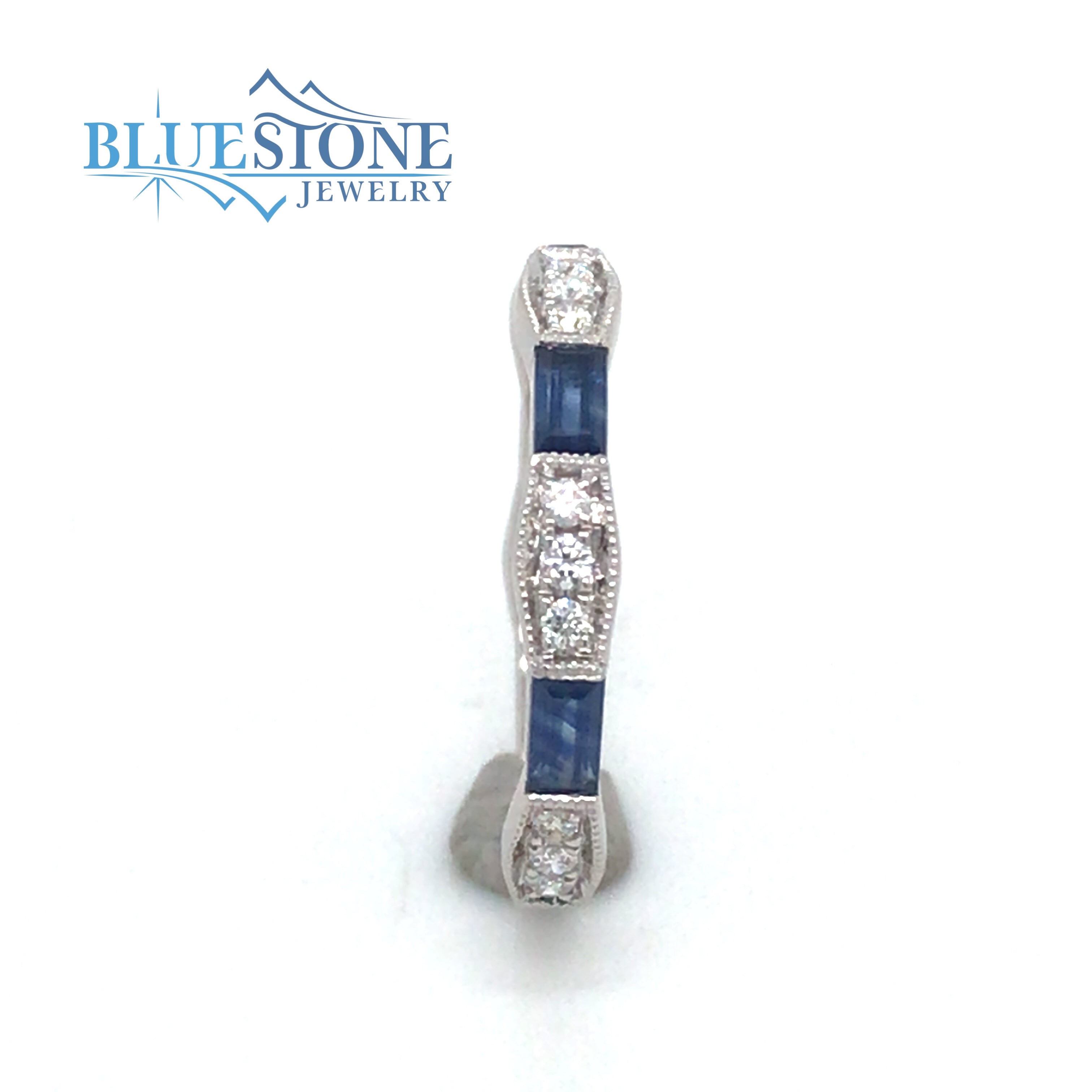 14kt White Gold Sapphire and Diamond Ring- Size 6.5